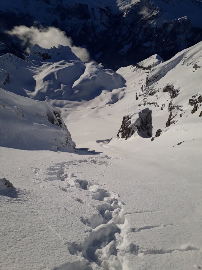 Selten so gute Verhältnisse im Melchtal angetroffen. Unten Pulver mit Unterlage, ab ca. 1800 Pulver mit einem grobkörnigen, dünnen eisigen Deckel der aber leicht zum fahren ist. Die Sonne hatte ordentlich Kraft: Hänge mit Süd und Süd-west Ausrichtung wurden richtig pappig und machen nicht mehr richtig spass zum fahren
