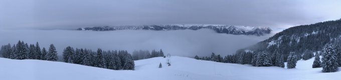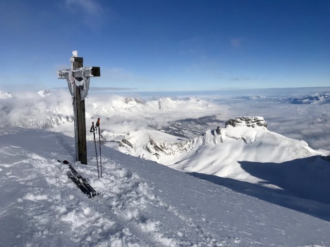 Morgens bewölkt, dann besser als erwartet; schöner Pulverschnee mit nur ganz leichtem Deckel über die ganze Tour. Aufstieg und Abfahrt bis Berghaus Malbon (Strasse geräumt, Parken 6 Sfr) eine Freude. Zahlreiche Wumm - Geräusche und Abgänge von den benachbarten Steilhängen, nicht jedoch auf der Route.