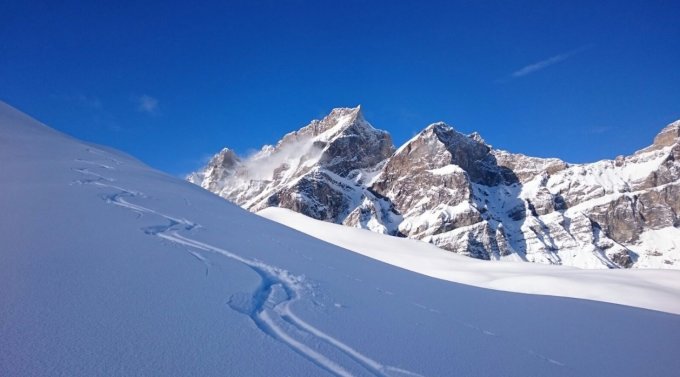 Grundsätzlich mehr als genug und absolut toller Pulver-Schnee - aber die Lawininegefahr war spürbar - obwohl nur mässig gemeldet.