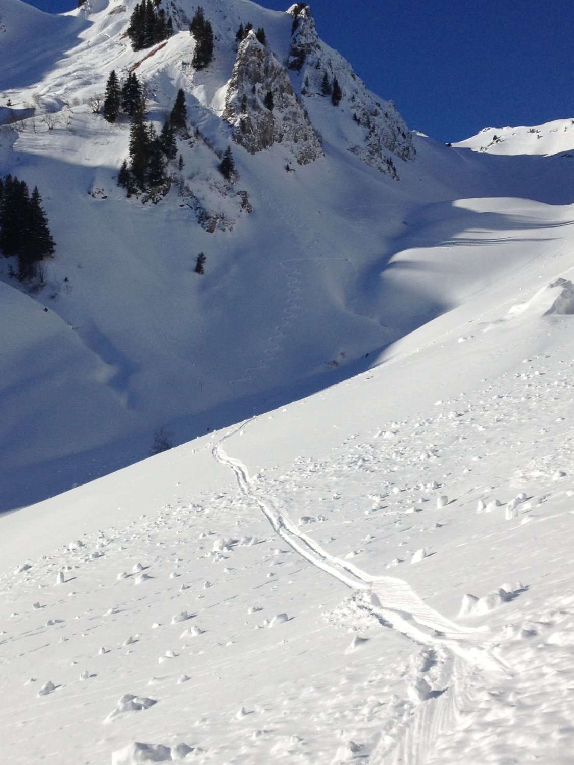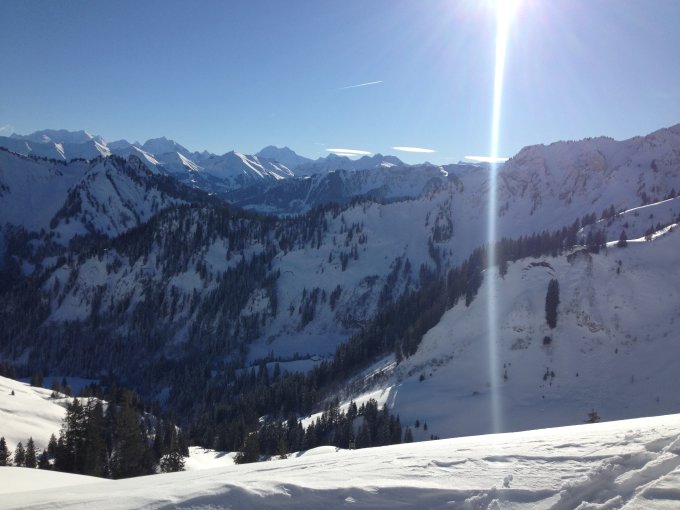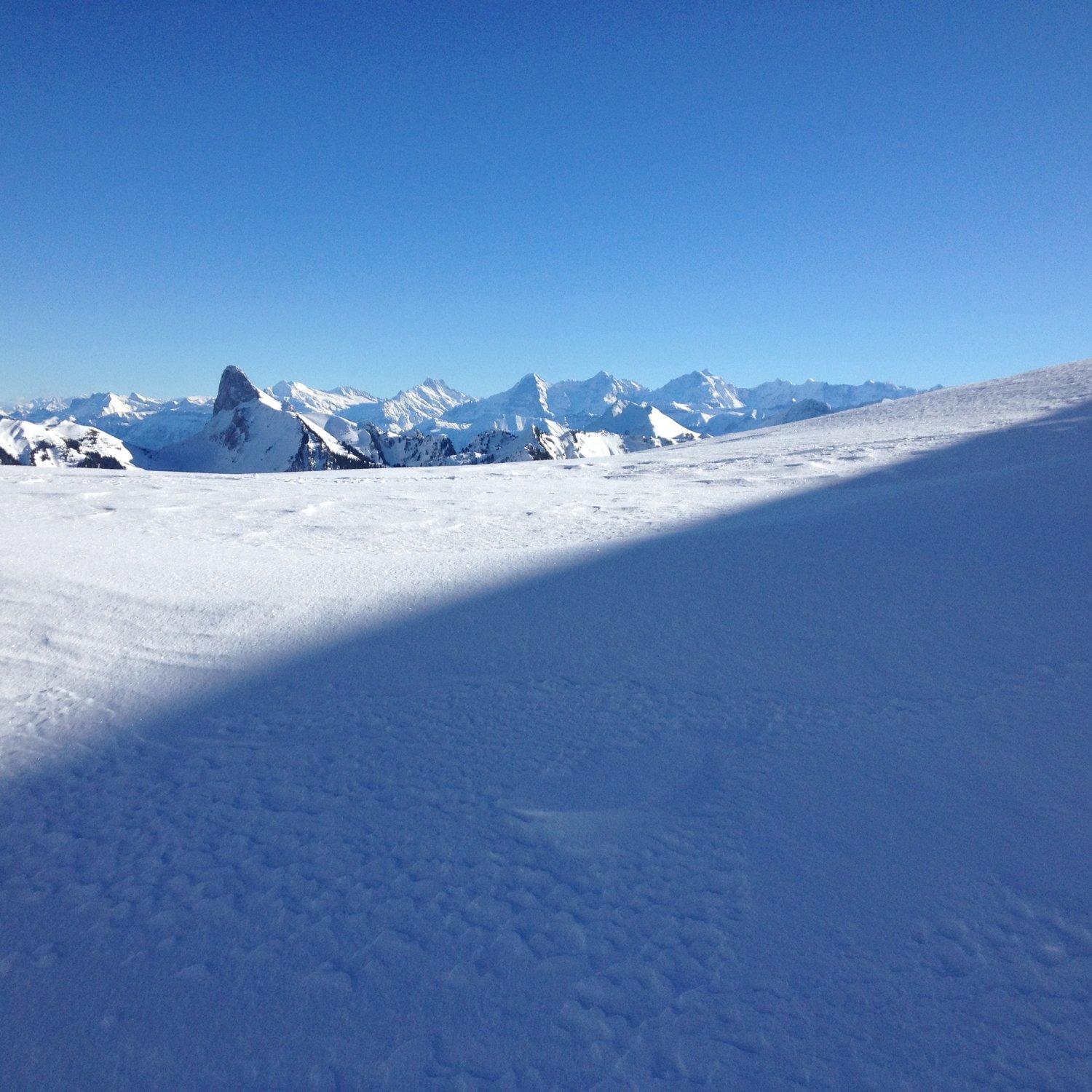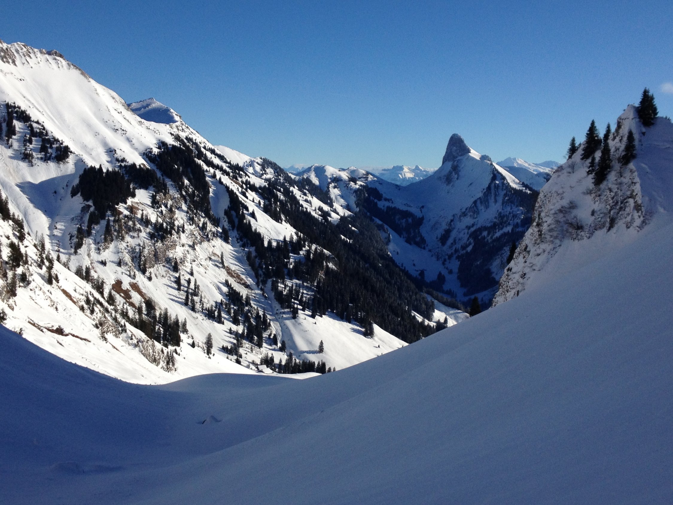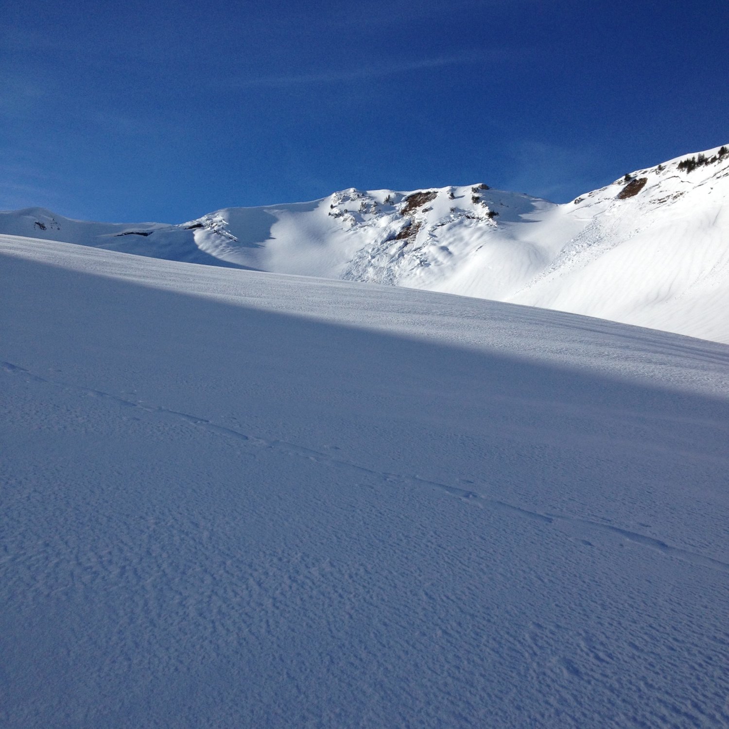 Das Gantrischgebiet ist sehr gut eingeschneit, wie schon lange nicht mehr. Pulver gut bis zur unteren Gantrischhütte (Parkplatz weiss geräumt, herzlichen Dank) z.T. etwas windgepresster Pulver, aber gut zu fahren. Bin über Morgete aufgestiegen, schmale aber sehr gute hohe Spuranlage und auch vom Schibespitz direkt zur unteren Gantrischhütte abgefahren. Heute recht warm, sonnseitig Frühlingsverhältnisse. Der Aufstieg auf dem Sommerweg vom Talmattetäli zur Wannenhütte war recht abenteuerlich mit Gleitschneerutschen, tiefen Anrissen in der Schneedecke, rutschigem freigelegtem Gras...