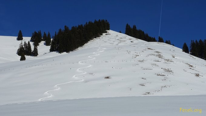 Die Abfahrt im oberen Teil ganz ordentlich. Nasser Schnee, fast wie im Frühling. Ab dem Wasserschloss (ca 1400m) sehr wenig Schnee und mühsam. Waldpassage (Graben) zu Fuss gut.