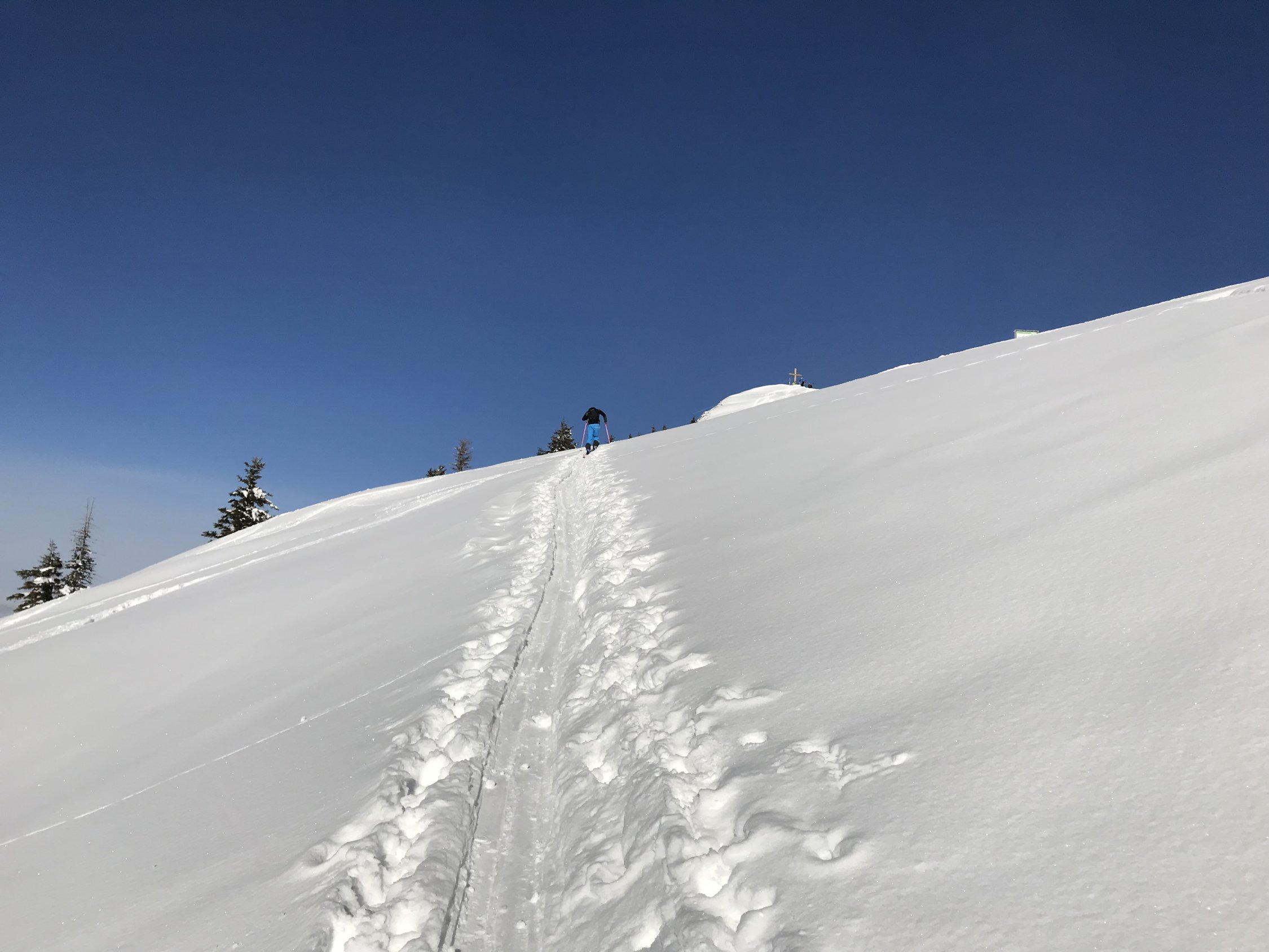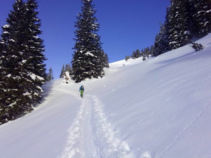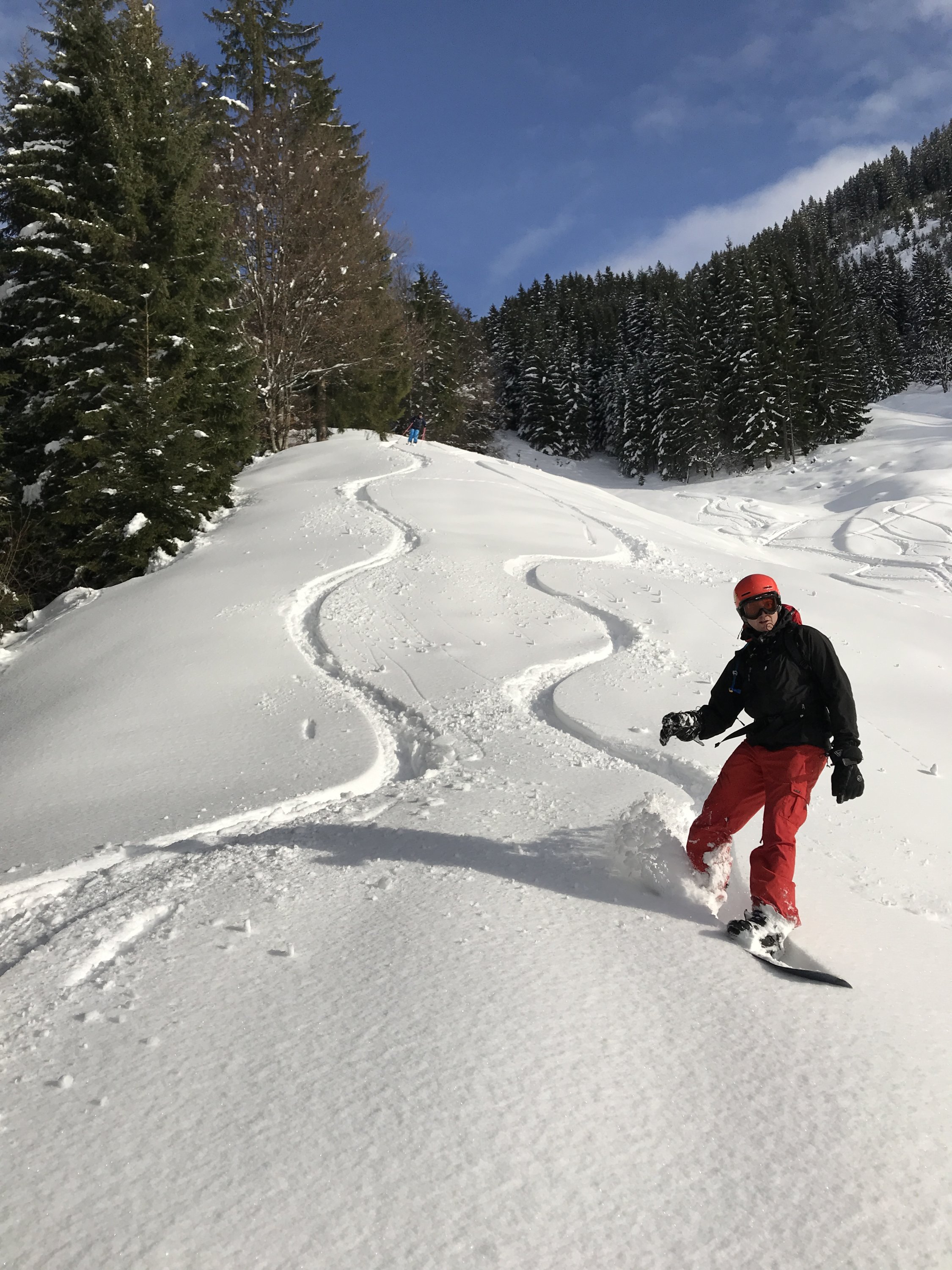 Insgesamt eine Traumschneelage und überdurchschnittlich viel. Gestern hat sich eine winzige Eislamelle auf der Oberfläche gebildet. Darunter gesetzter und dennoch sehr gut fahrbarer Pulver. Die Lamelle hat nicht weiter gestört. Heute nochmal herrliches Wetter - viel besser als gemeldet.