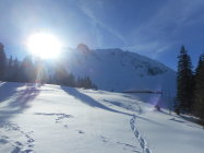 Wetter: Bestes Winterwetter. Temperatur beim Start um 13.00 Uhr bei der unteren Gantrischhütte -3 Grad. In der Sonne mild und windstill. Das Gantrisch Gebiet ist sehr gut eingeschneit.