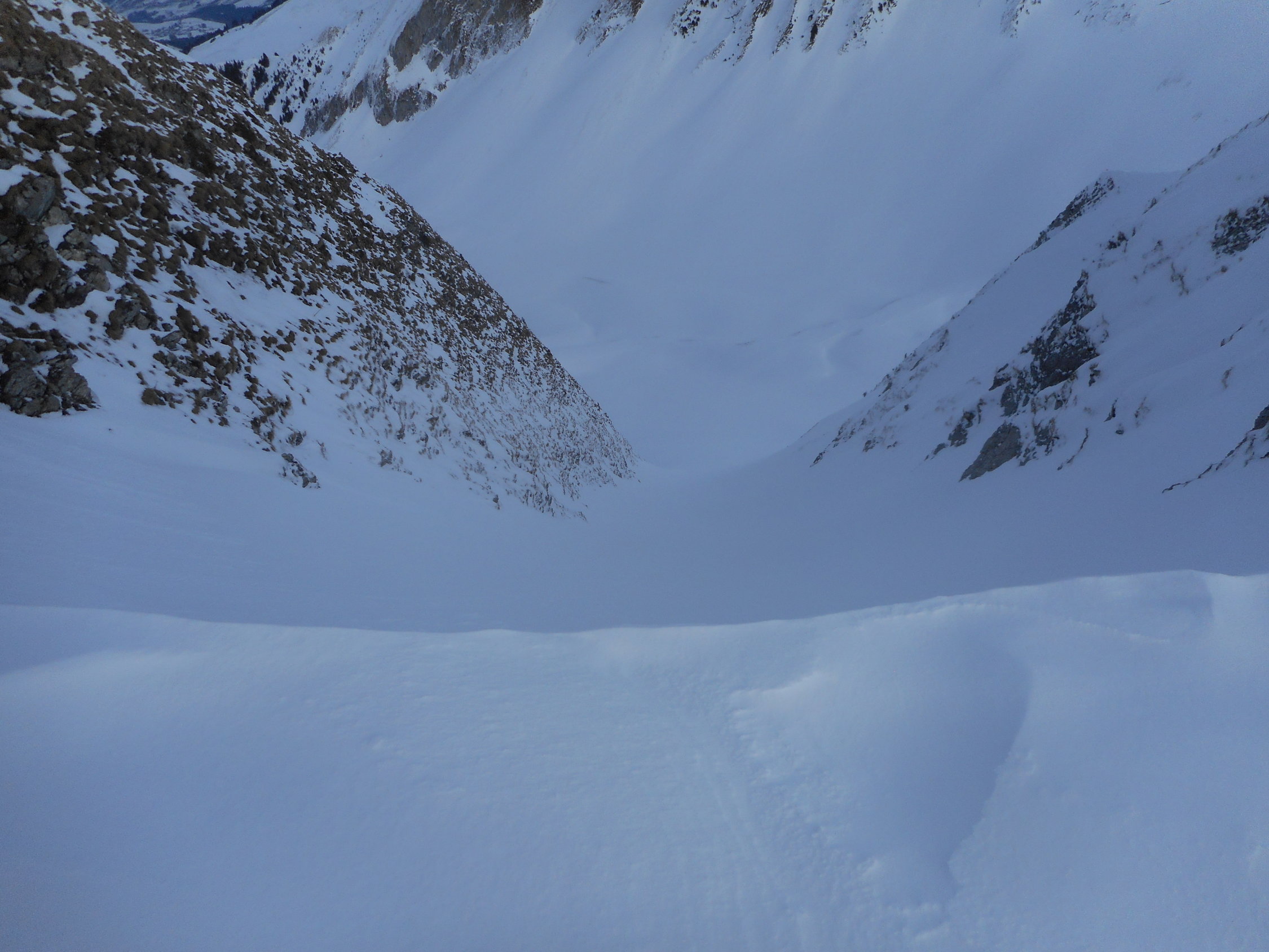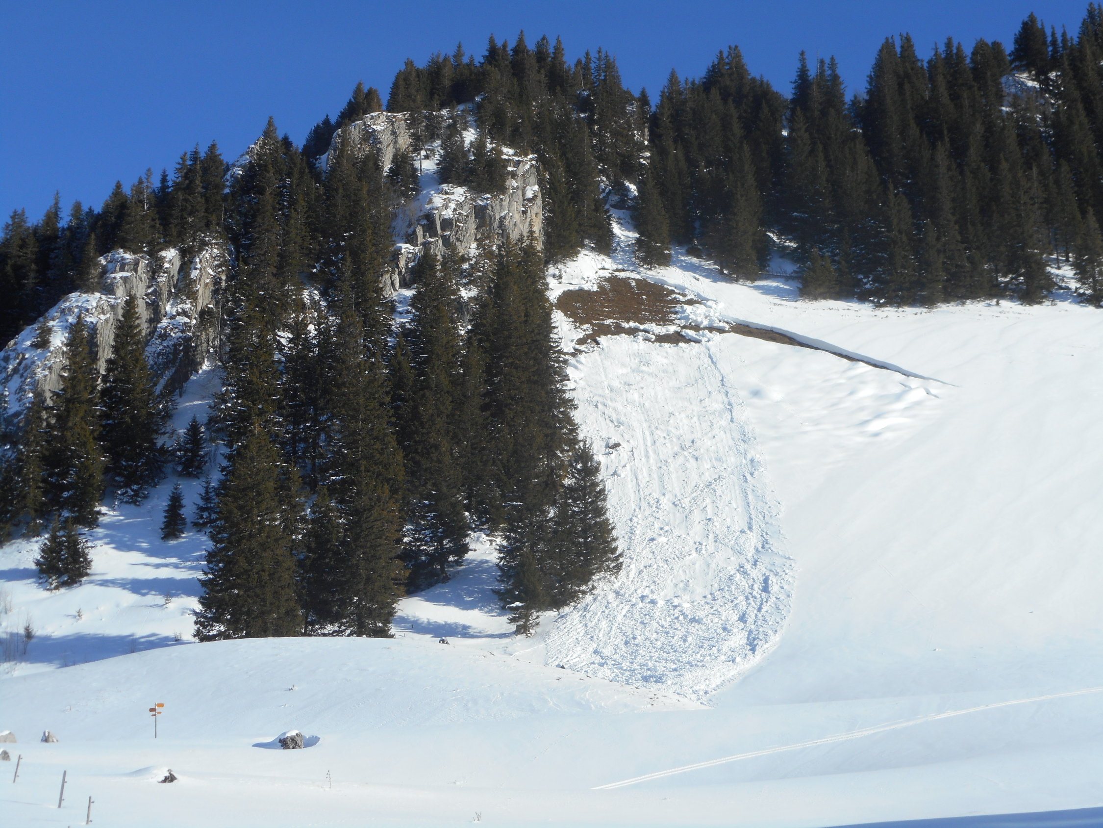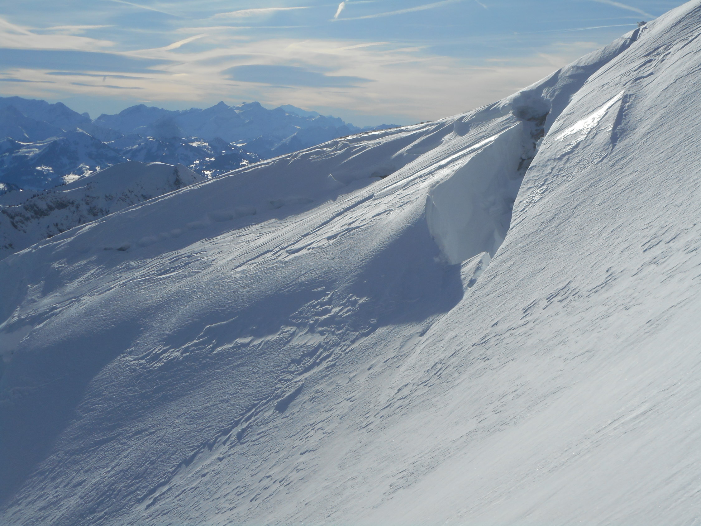 In den Süd- und Westhängen hats mehrere Grundlawinen. Auch im Südhang nach dem Morgetepass ist ein grosses Schneebrett abgegangen. Zudem hats einen sehr grossen Anriss. Siehe Fotos.