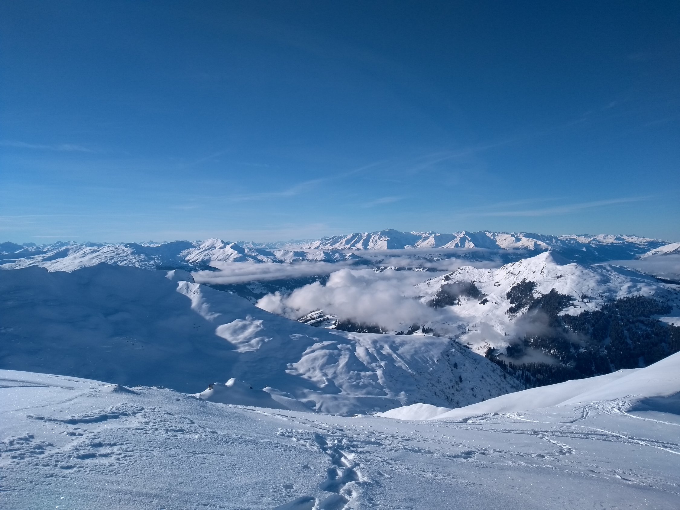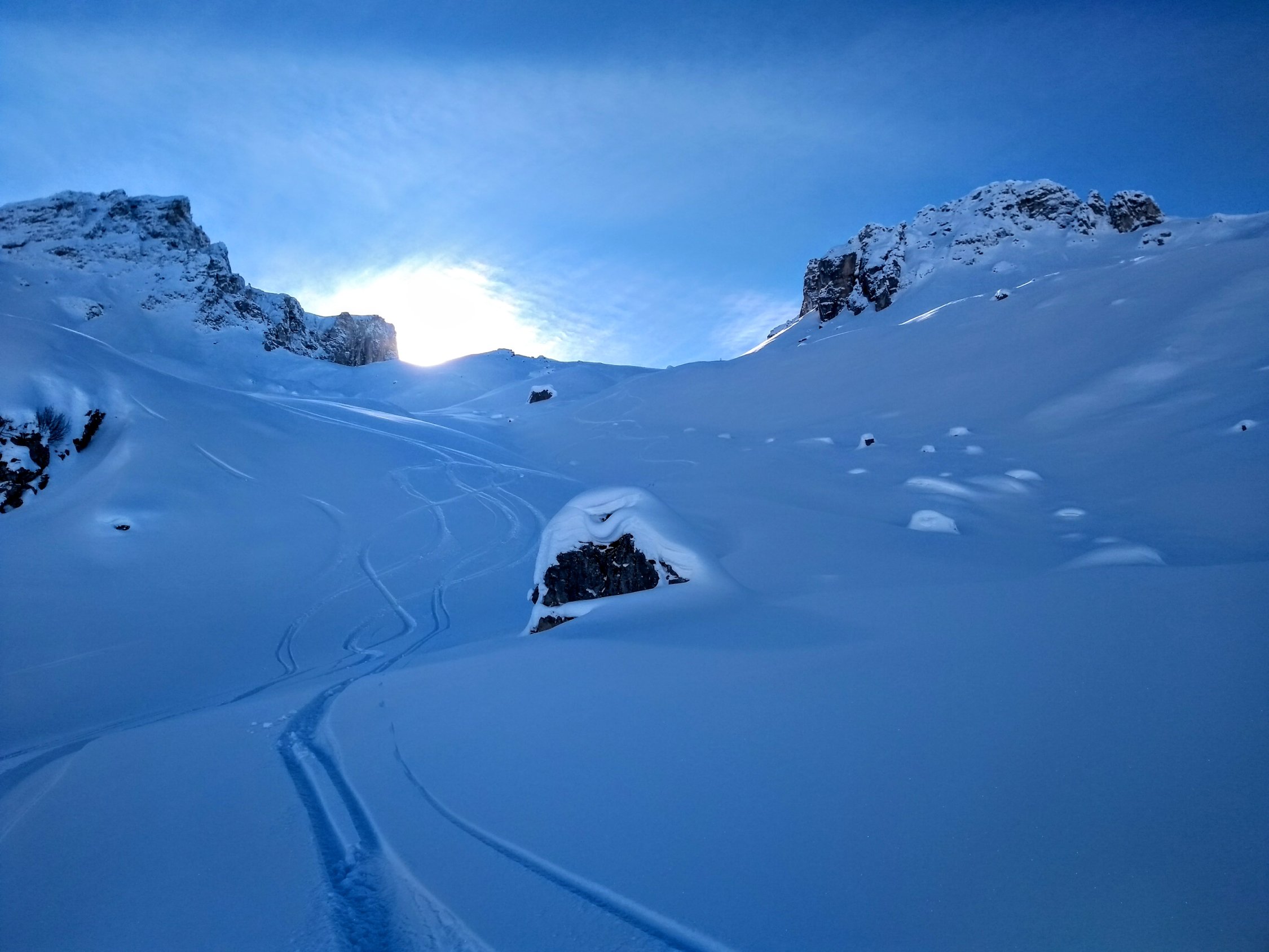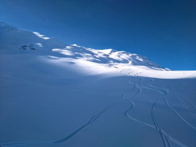 Eher dichter, aber schön zu fahrender Pulverschnee, weder feucht noch krustig! Abstecher zum Eggberg, welcher auch eine lohnenswerte Abfahrt bietet.