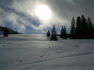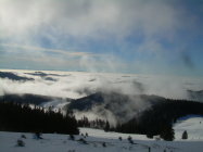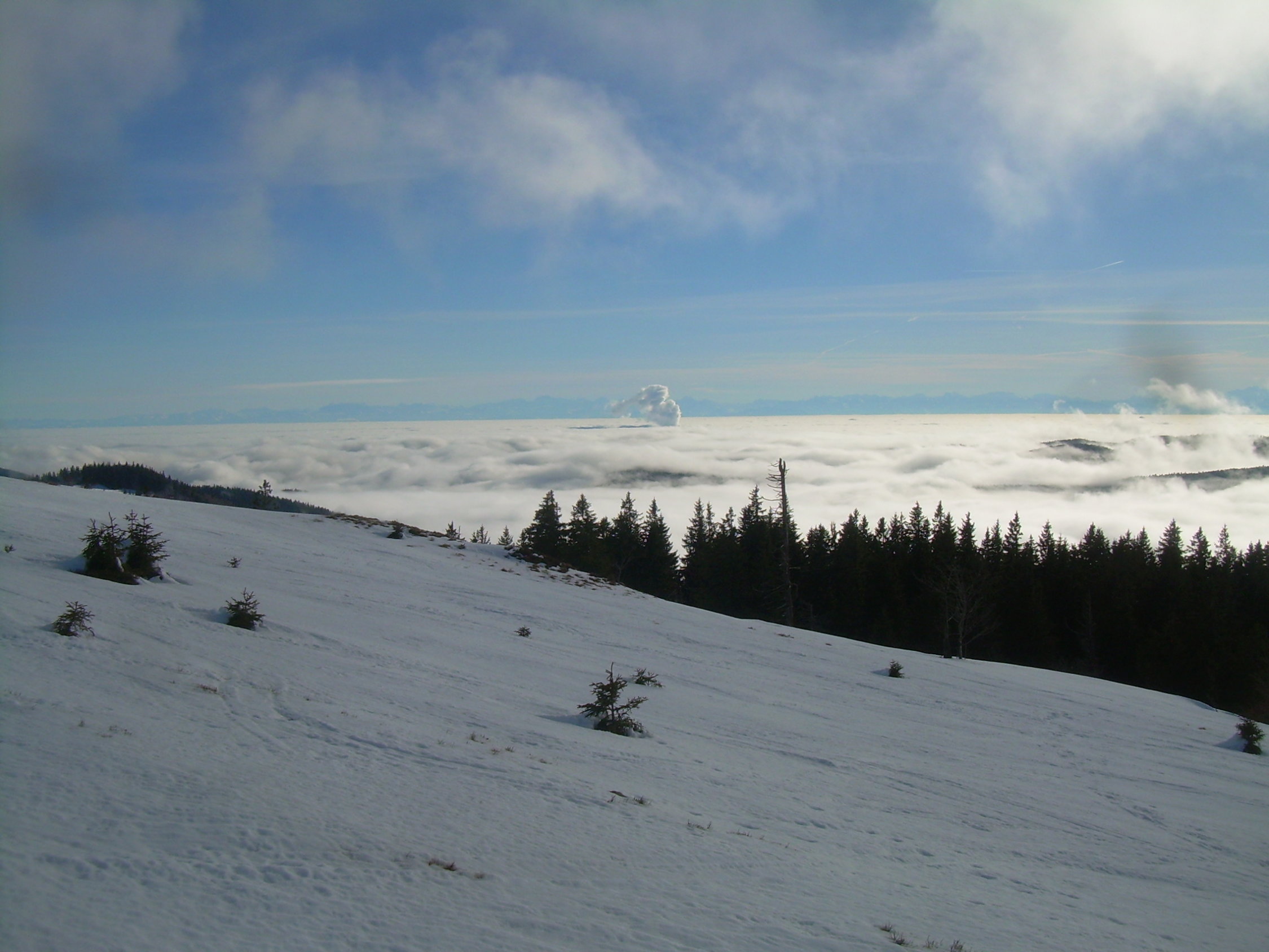 Ein Ausflug über die Hochnebeldecke über meine derzeitige Favoritenroute aufs Herzogenhorn. Durchgehende Schneeschuh- oder Skispur war vorhanden, teilweise auch maschinell gespurte Winterwanderwege. Abseits der Spur gesetzte, durchfeuchtete Schneedecke, mit Schneeschuhen nicht tragend, aber gängig, mit Skiern wohl gut befahrbar.