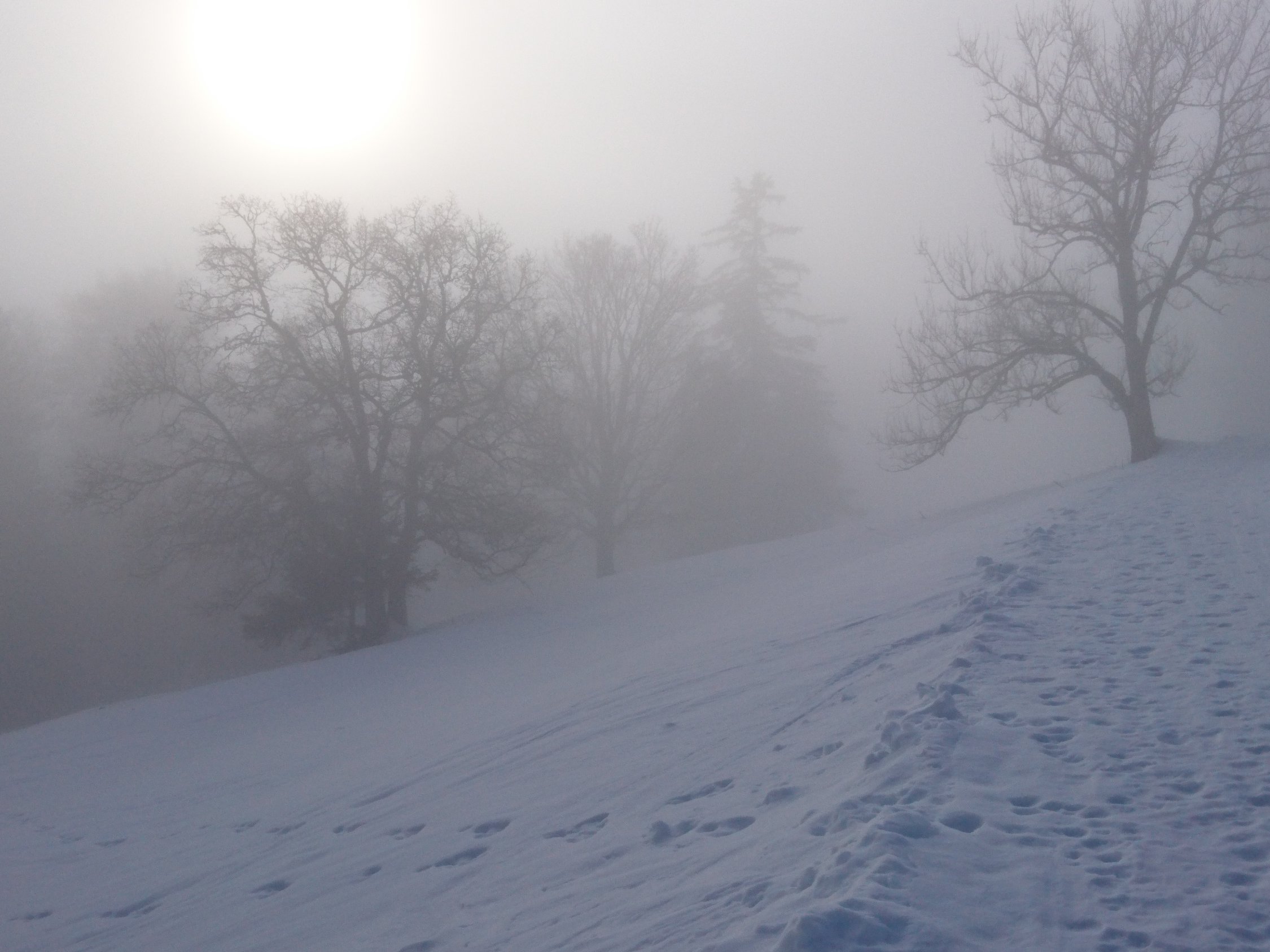 Tragender Deckel, Abfahrt über die Piste gut. Ab Pres d Orvin über dem Hochnebel.