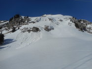 Aufstieg: Schnee war tragend, d.h. hart gefroren wie auf einer Frühlings-Skitour.