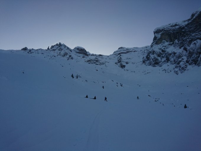 Wie erwartet nicht top Bedingungen in der Abfahrt, oberhalb ca. 2200m.ü.M. z.T. noch Pulverschnee angetroffen, darunter windgepresst, Bruchharsch und Hartschnee. Das schöne Wetter entschädigte für die eher bescheidene Abfahrten. Zurück bei Urnerstafel noch einmal aufgefellt und zum Hasenstöck aufgestiegen, hier in der steilen Rinne sehr gute Verhältnisse mit Pulverschnee. Die Abfahrt bis zur Talstation Fuhr, mit diesen Bedingungen, dann eher Pflicht als Kür.