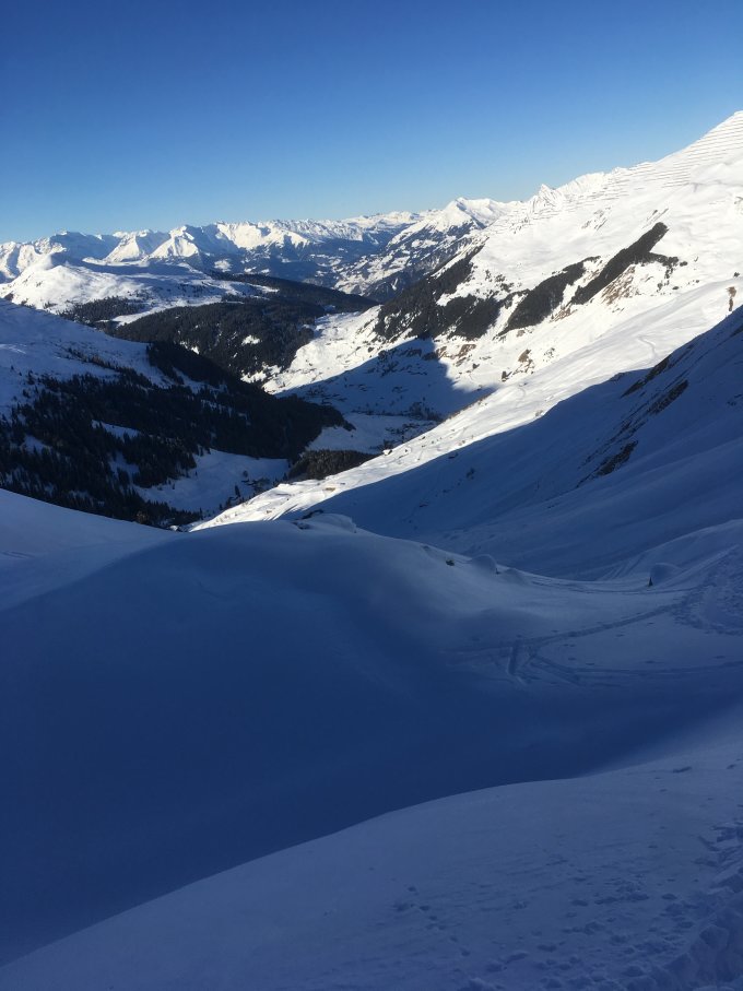 40 hm presspulver. Tiptop zum Fahren. Ab Partnun Strasse runter . Geht auch mit Snowboard