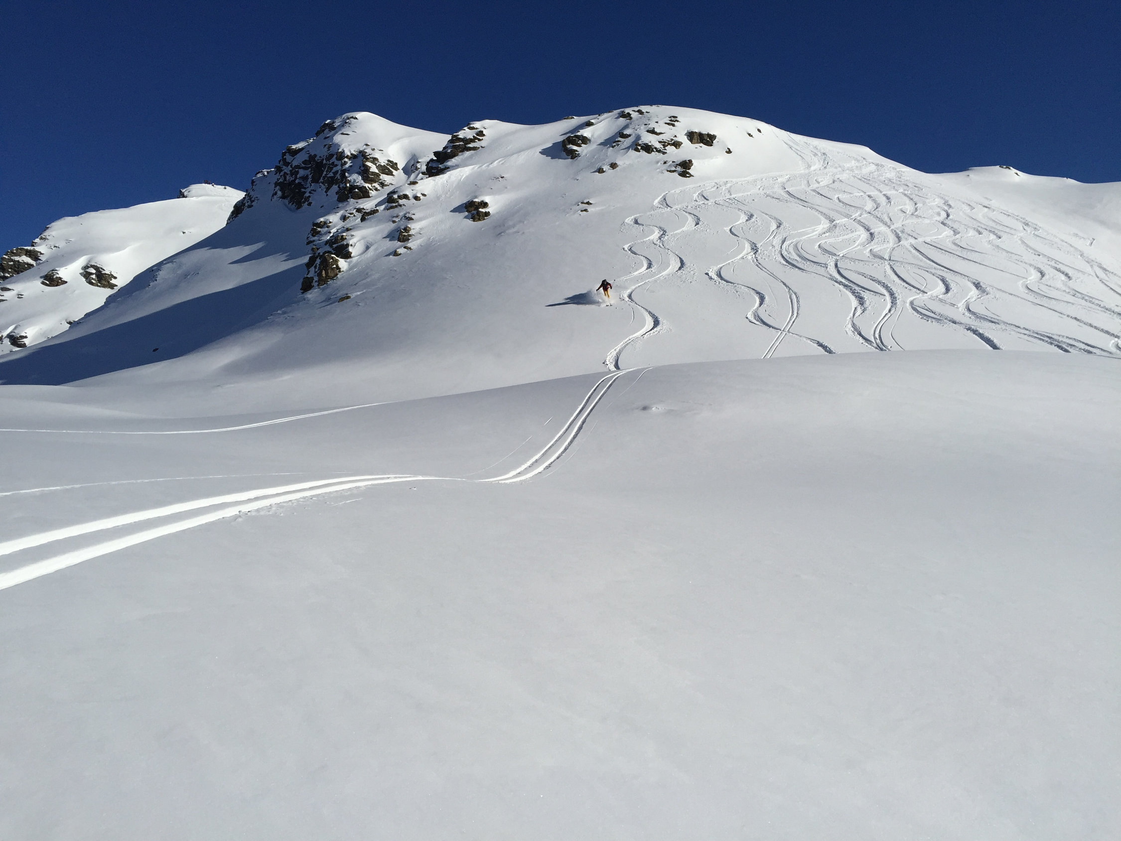 Nach mir waren noch ziemlich viele Leute unterwegs. Langsam dürfte das Ganze ziemlich verfahren sein. Ansonsten sicher morgen noch gut, dann kommt der Föhn mit wechselhaftem Wetter, was eine Neubeurteilung verlangt.