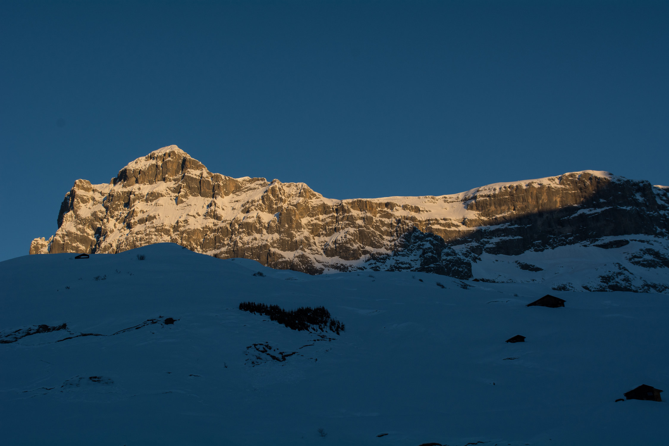 Vor allem auf der Schattenseite des Partnunkessels liegt sehr viel Schnee. Wenn ich an die beiden vergangenen Jahre denke, kann man nur sagen: Freude herrscht!
