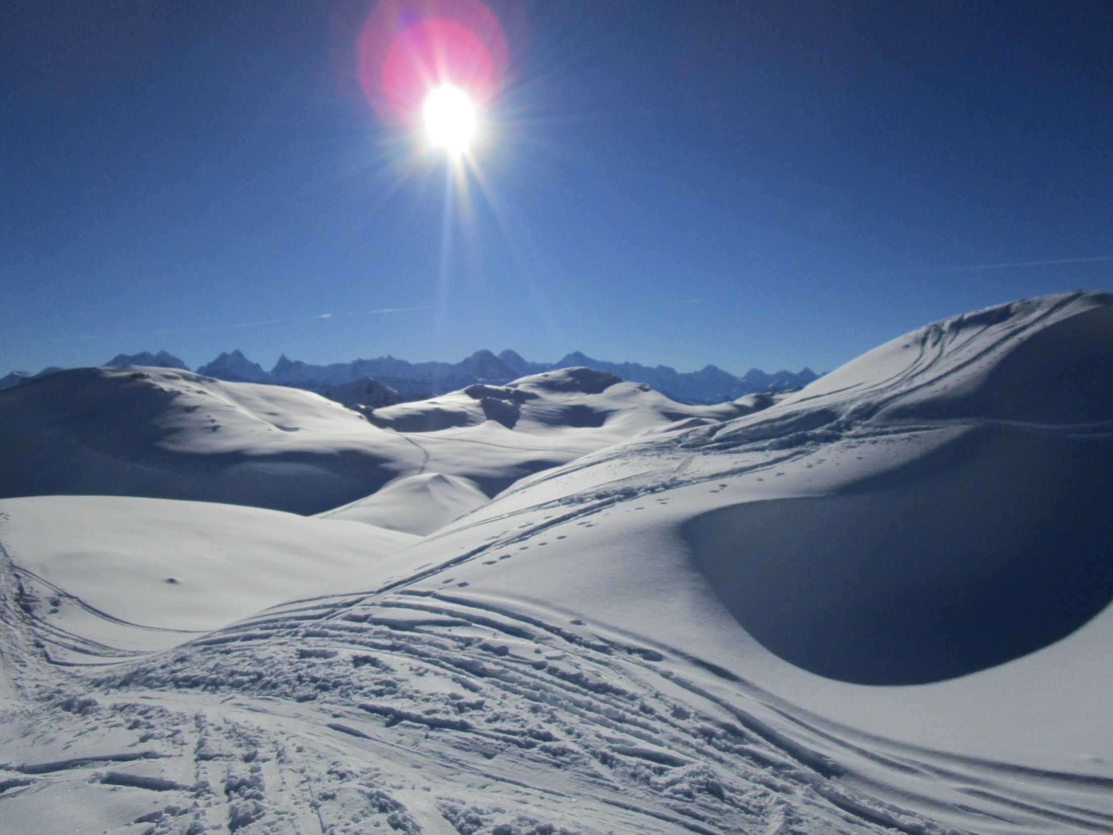 Ganze Schrattenfluh recht gut eingeschneit für diese Jahreszeit.