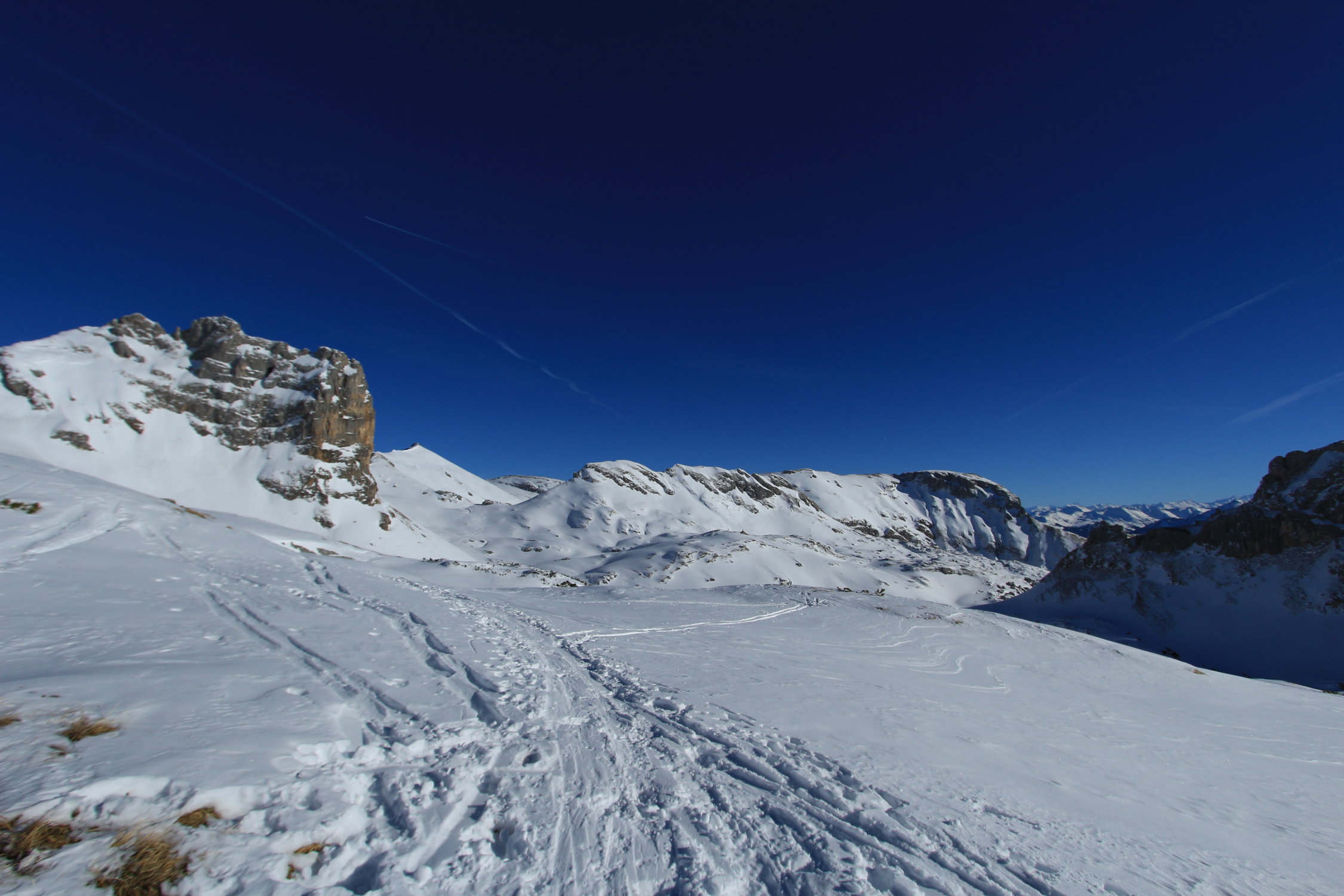 Zu erwähnen wäre auch dass die Spur ab Erfurter Hütte von Schneeschuh- und Fußgängern ordentlich durchgewühlt ist. Natürlich ist Platz für alle da und jeder hat das Recht auf seinen persönlichen Spass. Erfreulich ist's trotzdem nicht in der aufgewühlten Spur, zumal bei den derzeitigen Bedingungen die Fell dann leichter stollen.