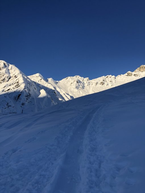 Ich hatte eher üblen Bruchharsch erwartet (und trotzdem wollte ich mal wieder auf den Chli Chärpf), aber überraschenderweise tolle Verhältnisse vorgefunden. Oben (teils harter) Pulver, auch schon recht zerfahren, der dann nahtlos bis Obererbs aufsulzte.