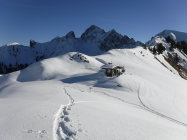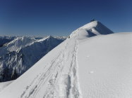 Schöne Halbtages-Route, die von Skitourengänger wohl gern angegangen wird. Sie ist sonnig, unsteil, und bietet Südhänge zum Abfahren. Allerdings können Gleitschneerutsche den Güterweg zum Zafernmaisäß treffen und an der breiten Südseite unterhalb des Gipfels abgehen, so daß man den Südhang bei entsprechender Situation erst weiter rechts ab dem Wegweiser Zafernmaisäß vor der Bären-Alpe im Linksbogen an den lichten Bäumchen links vorbei umgeht und so zur Kapelle am Furkla aufsteigt.