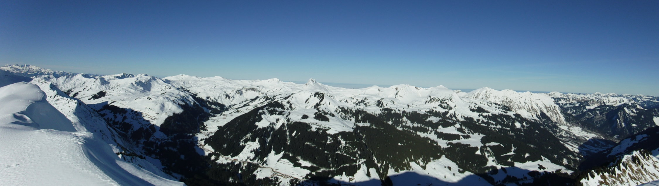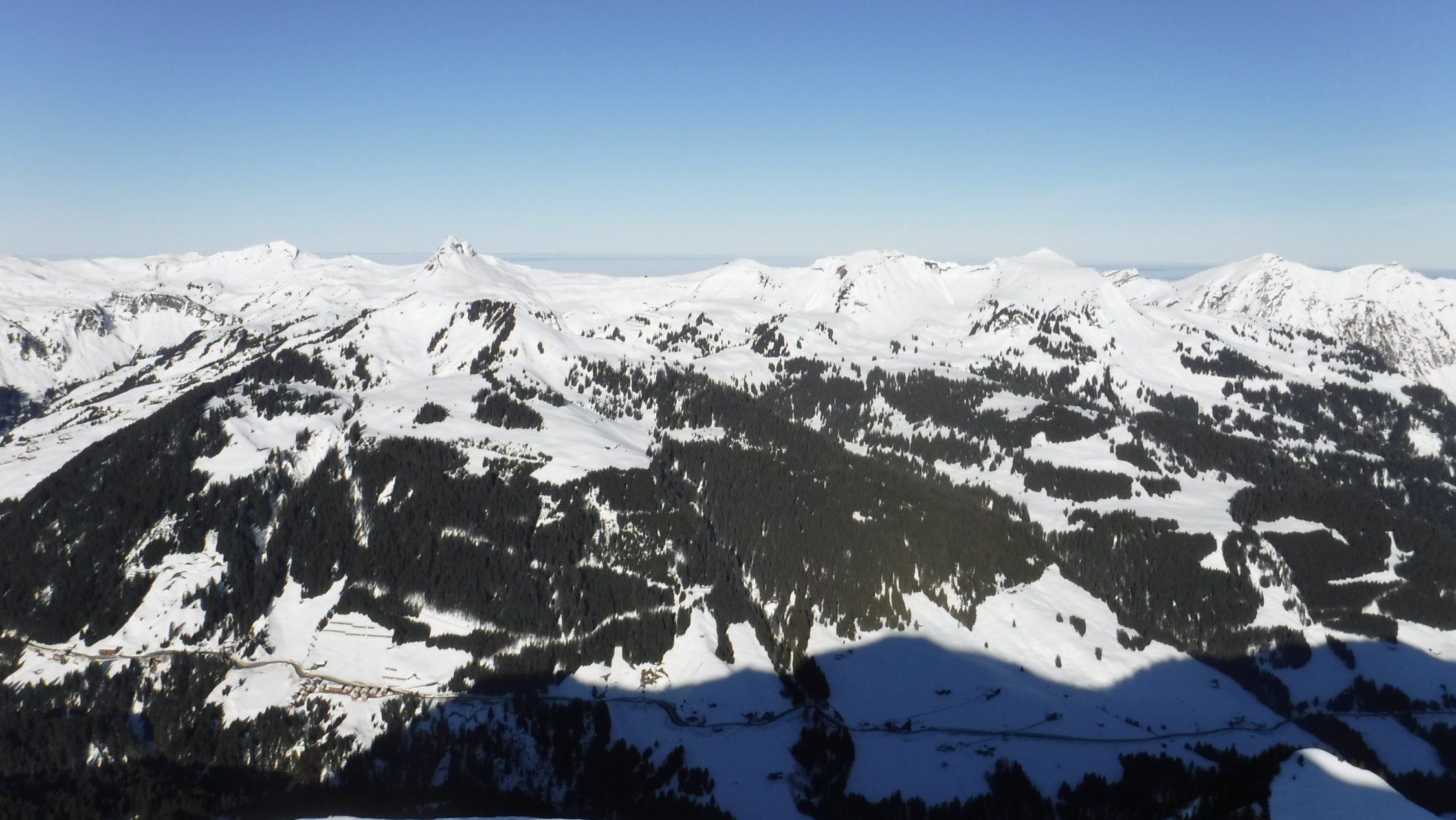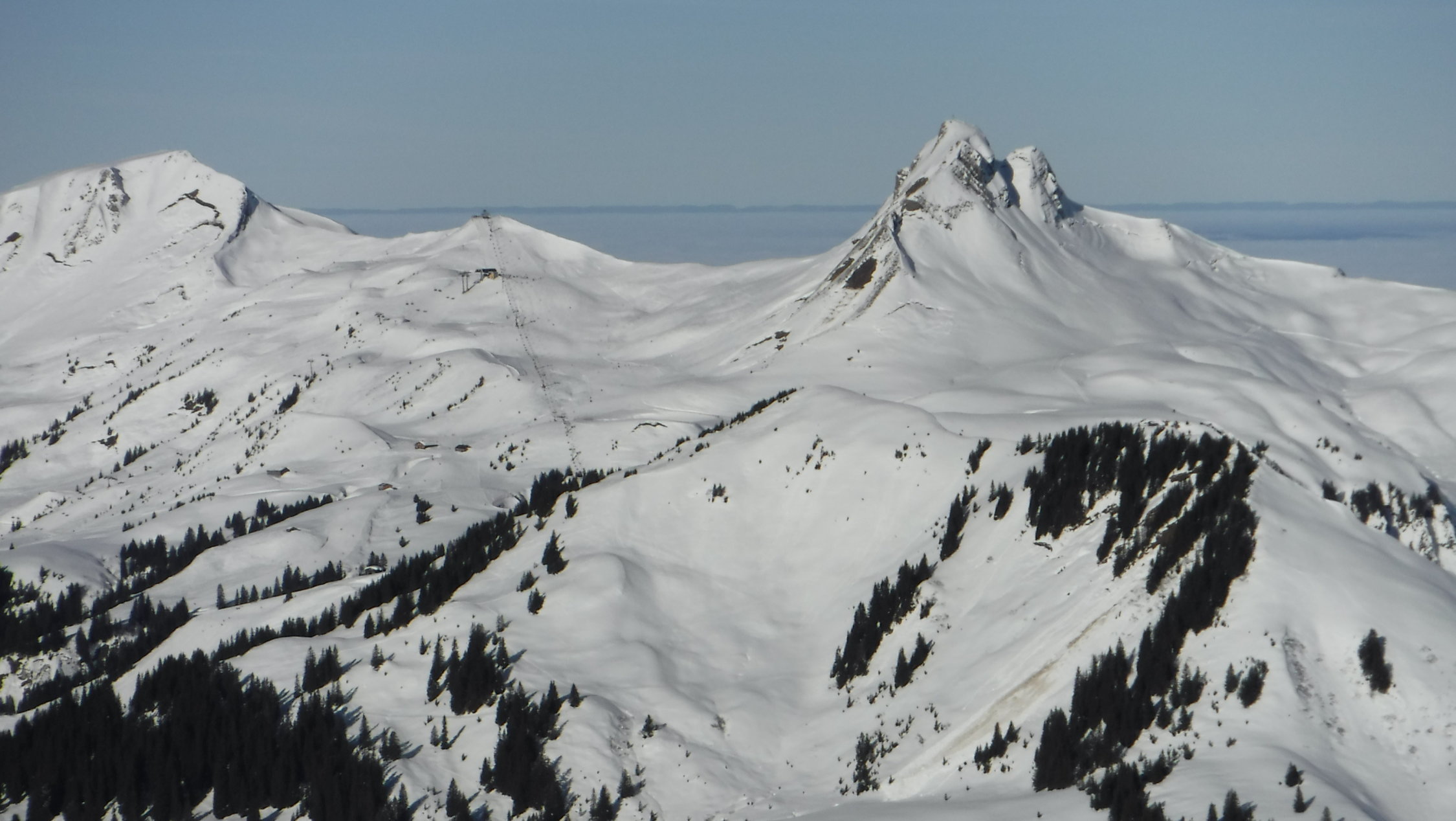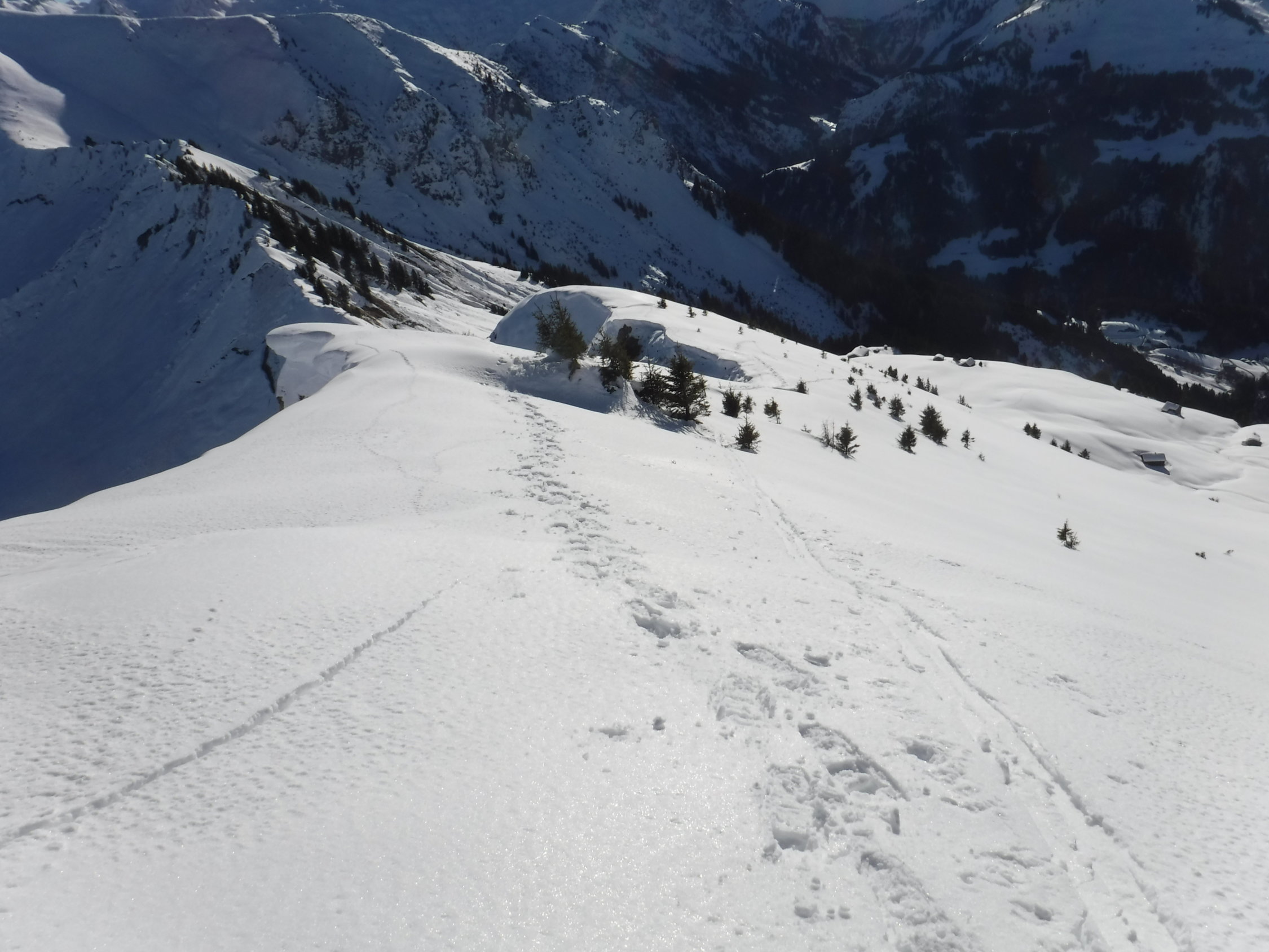 Die Parkierungsmöglichkeiten sind am Ausgangspunkt knapp. Im Aufstieg hat man vom Anfang des Güterwegs schöne Aussichten zu den weißen Naturschneefassaden im Skigebiet von Faschina. Am Gipfel 7 Skitüerler angetroffen. Kurz nach mir kamen die gleichen 4 Skitourengänger an wie gestern am Klippern.