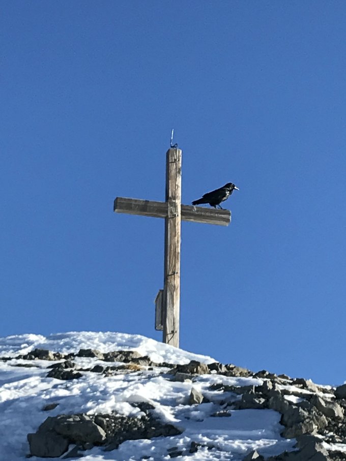 Gipfelhang sehr abgeblasen, bei der Abfahrt auf verdeckte Steine achten, wir hatten aber trotzdem noch Powderhänge gefunden.