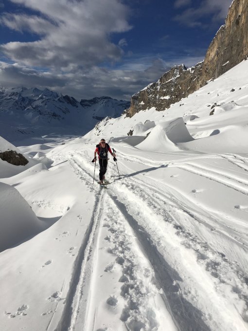 Die Spur war gut angelegt - an vielen Stellen durch Schneeschuhgeher ausgetreten. Keine Harscheisen notwendig.