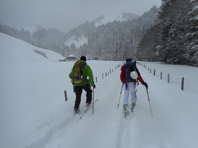 Ab der Alpe Unter les Recardets bis 70cm Neuschnee. Im Couloir 50cm bis 100cm bester Pulverschnee, wie er besser nicht sein kann. Wir sind direkt durchs Couloir hochgestiegen, um die Verhältnisse kennen zu lernen. Wir fühlten uns sicher, und geborgen!