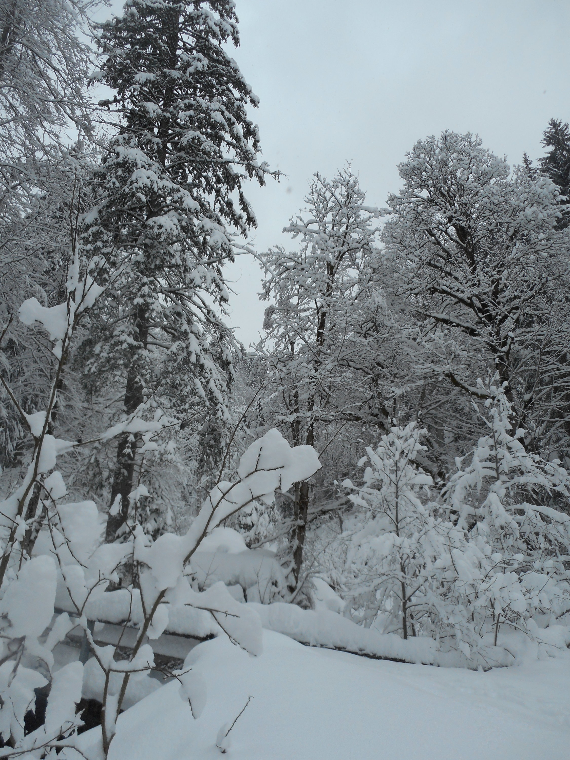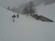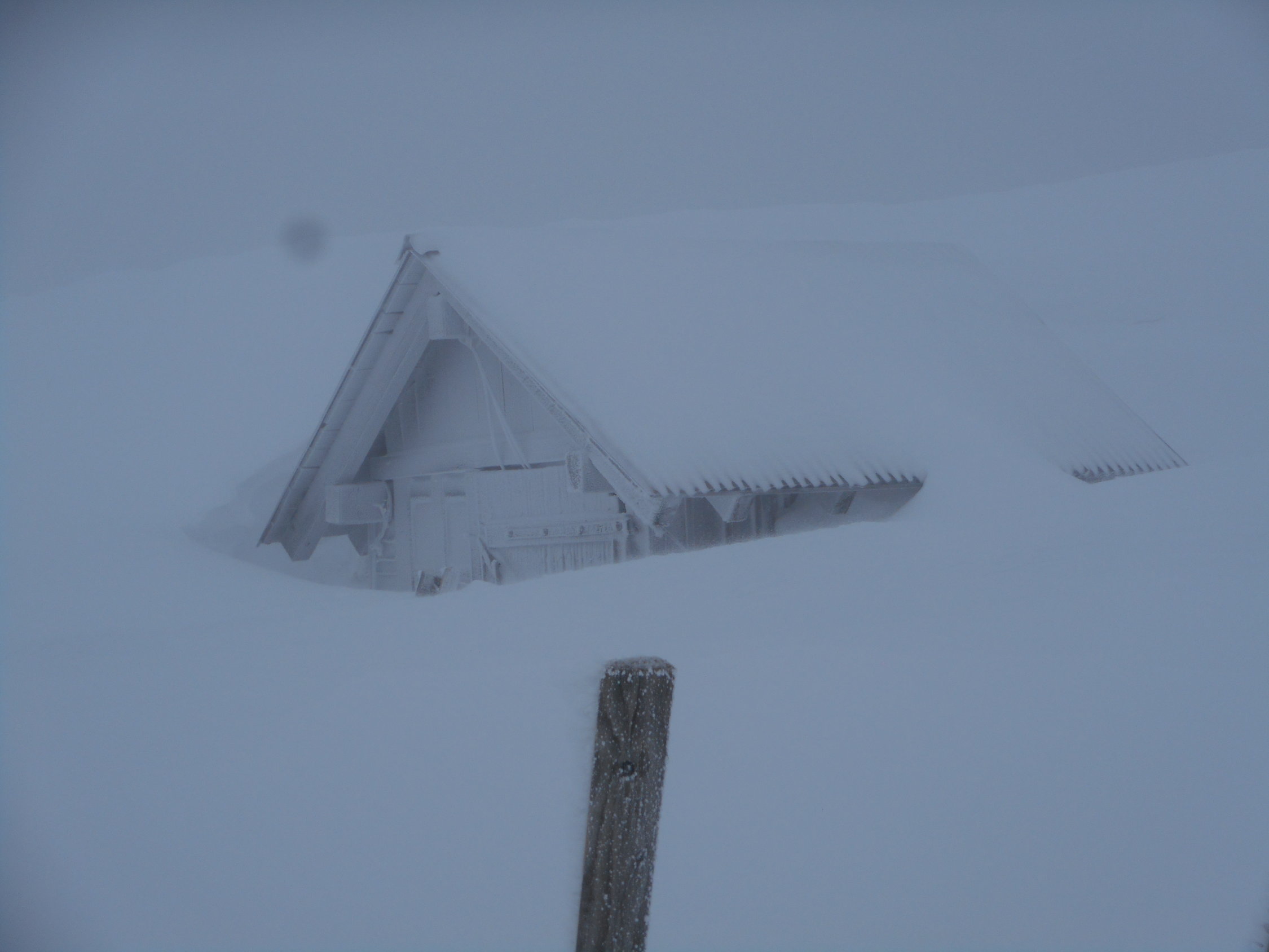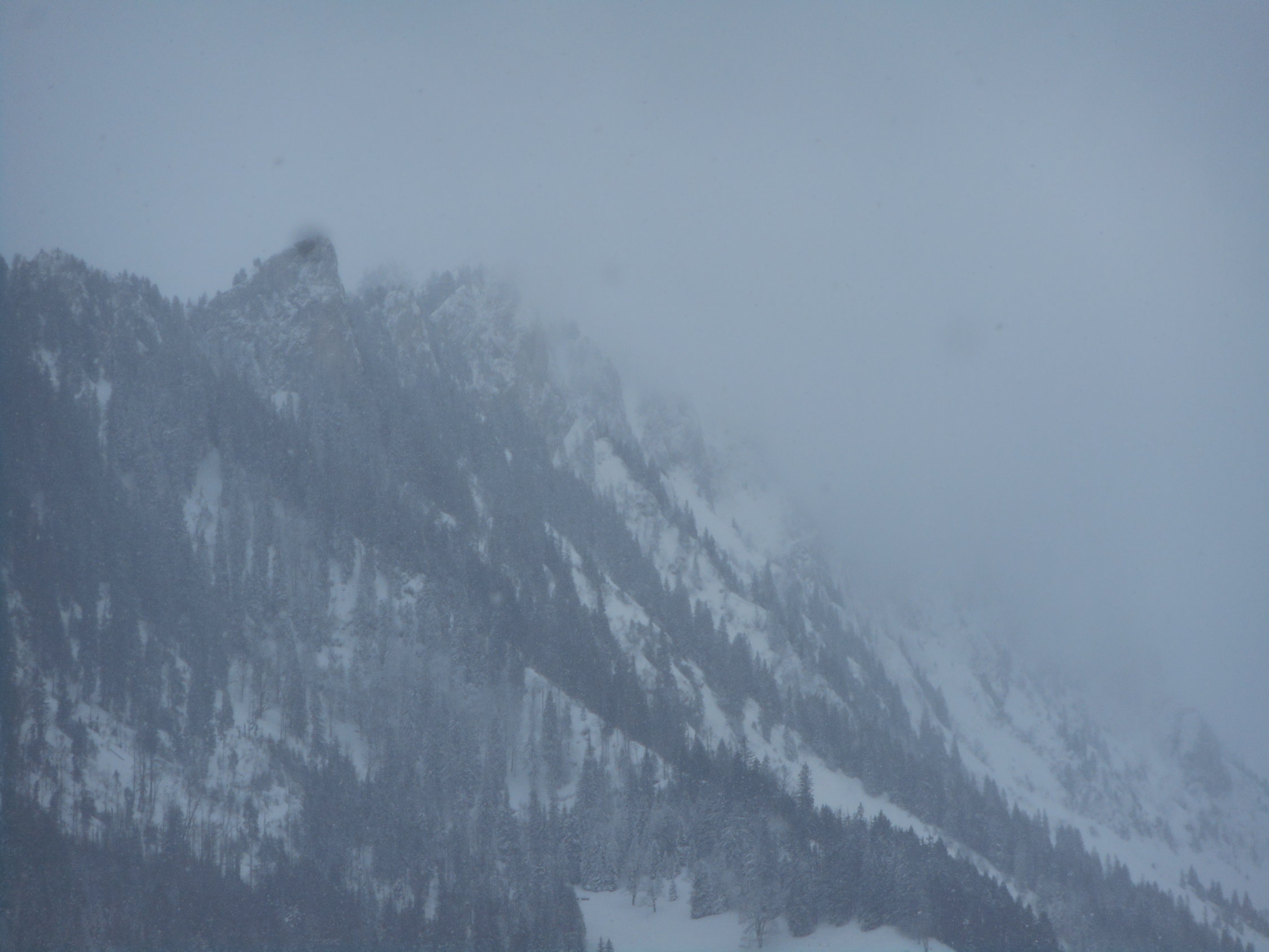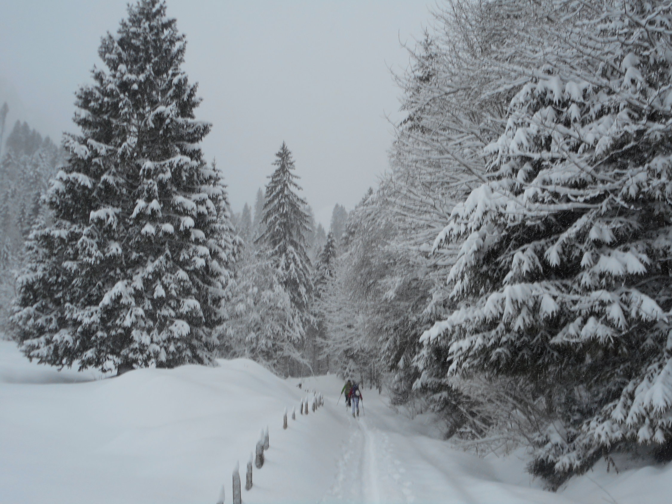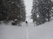 Aufstieg: In Schwarzsee war es um 09.00 Uhr - 3 Grad. Bei ruhigem stillen Schneefall. Neuschneemenge in Schwarzsee 40cm bis 50cm.