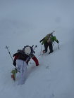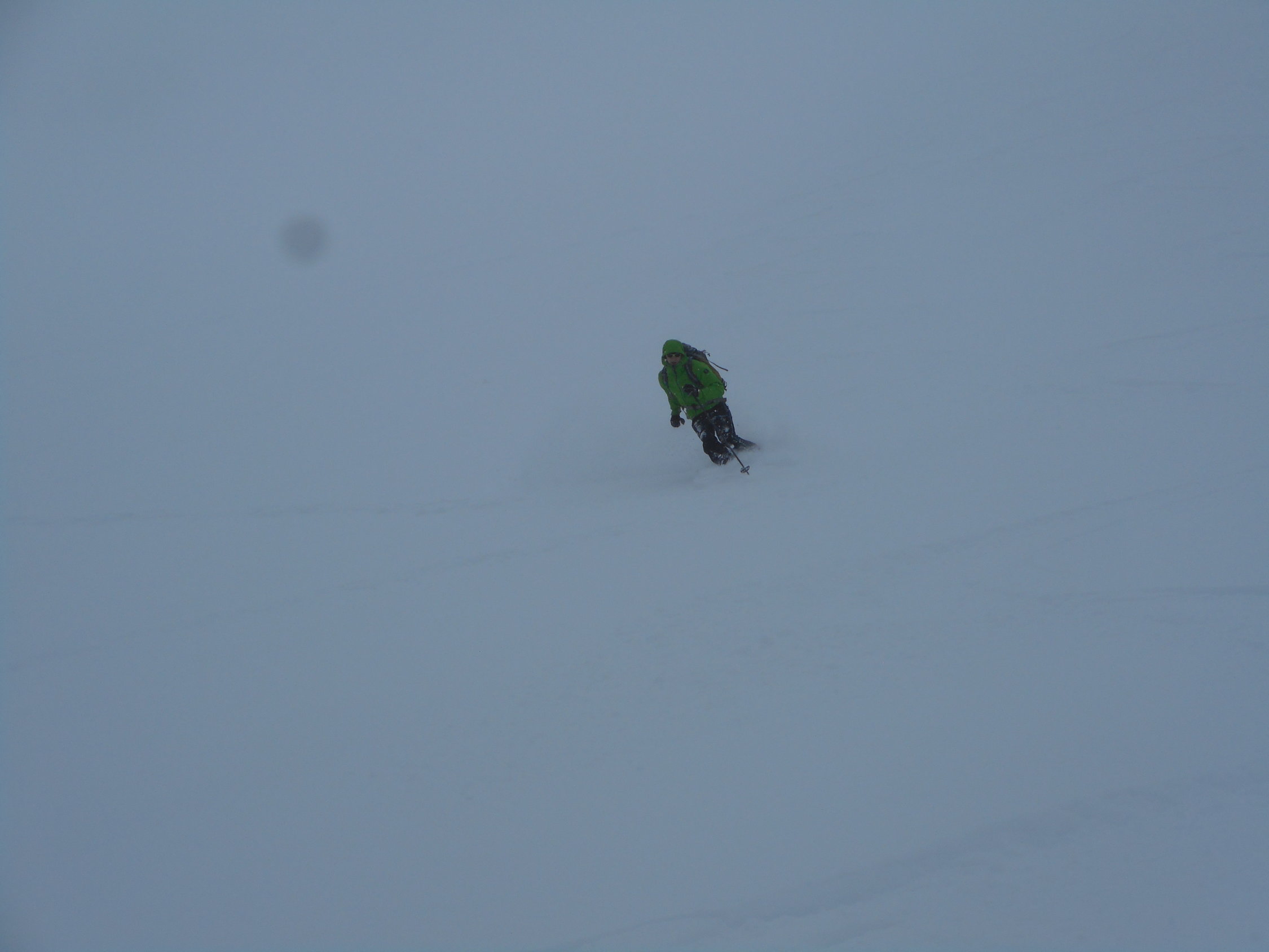 Zwei kleine Pulverschnee Rutsche sind durchs Abfahren ausgelöst worden. Der Schnee war jedoch ungebunden, locker, und ohne Windeinfluss im Couloir abgelagert worden.