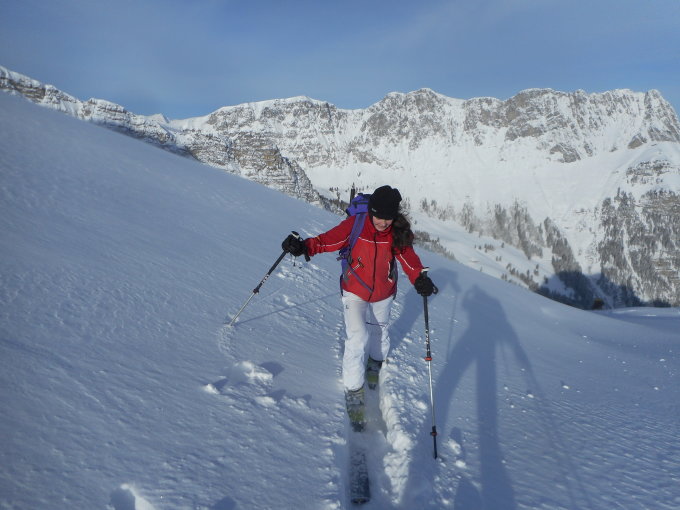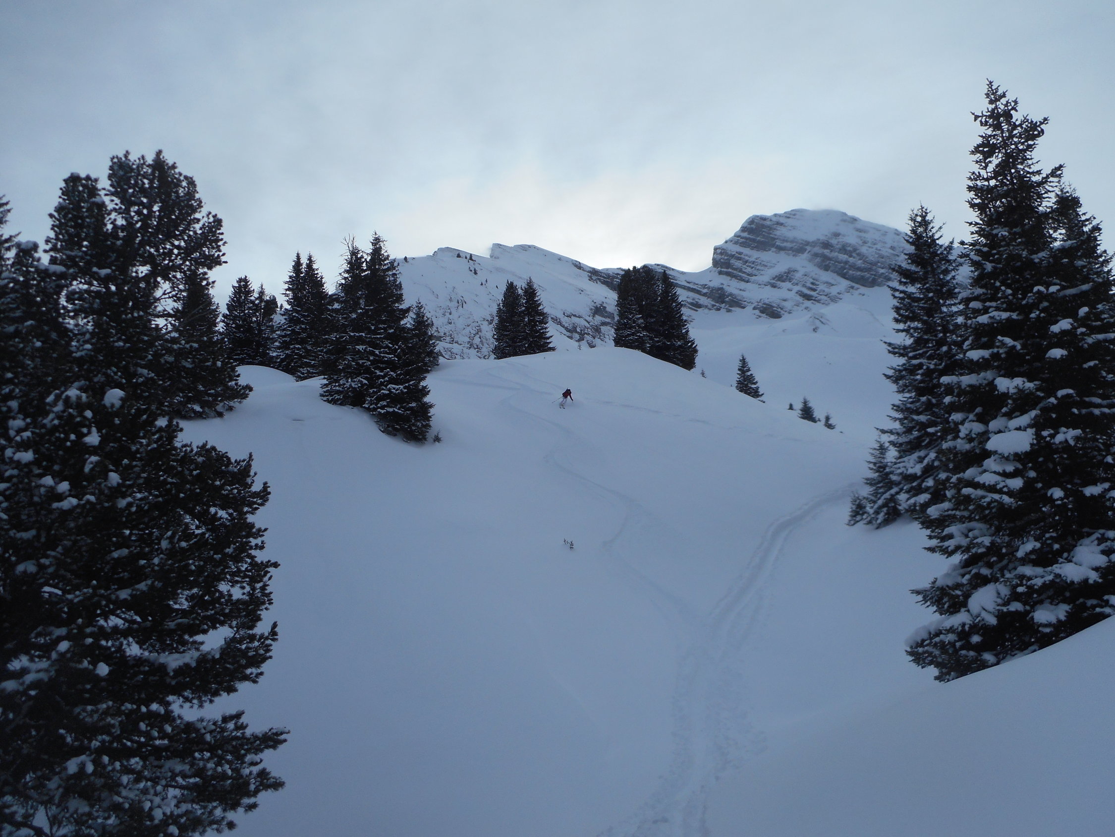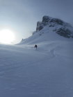 Sarah Elena, Marcel und Raphael waren einen Tag vorher im Patraflon NO- Couloir. Siehe Gipfelbuch. Bis 2000m war der Schnee ruhig gefallen, und ohne grossen Windeinfluss. Von Donnerstag auf Freitag waren aber starke Winde, und es hat viele Triebschnee ansammlungen gegeben. Man sollte momentan sehr defensiv steigen.