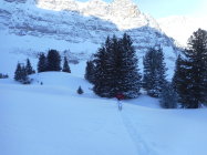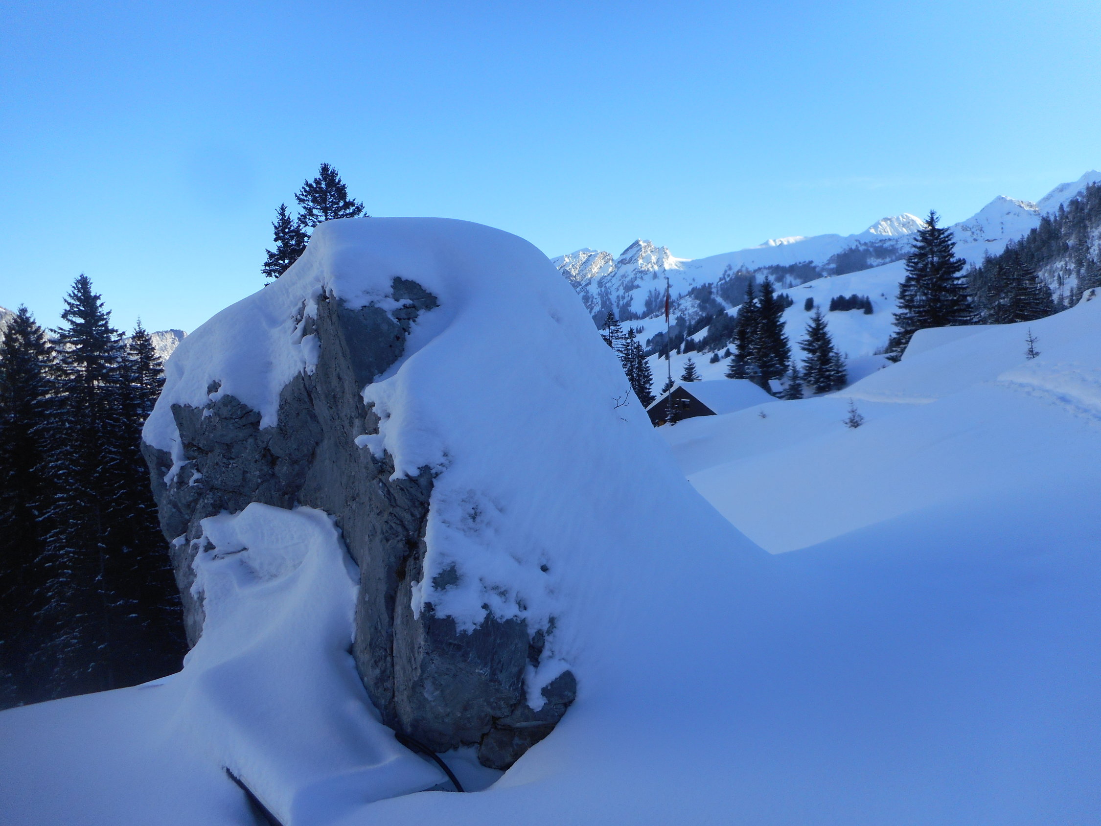 Das Diemtigtal ist sehr gut eingeschneit. Nach den neuen Niederschlägen, begleitet vom starken Wind neu beurteilen.