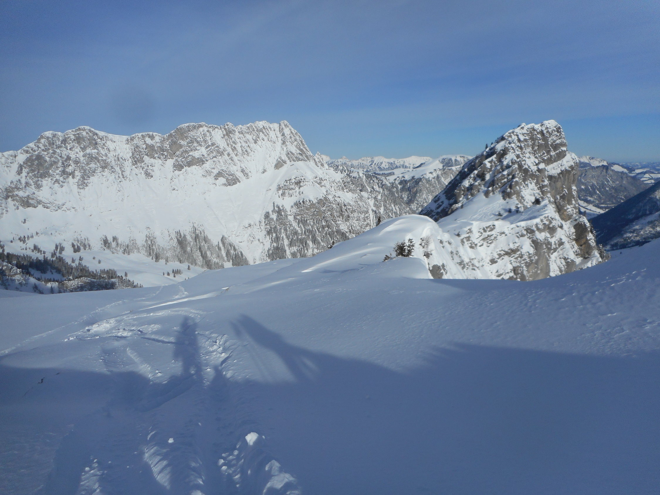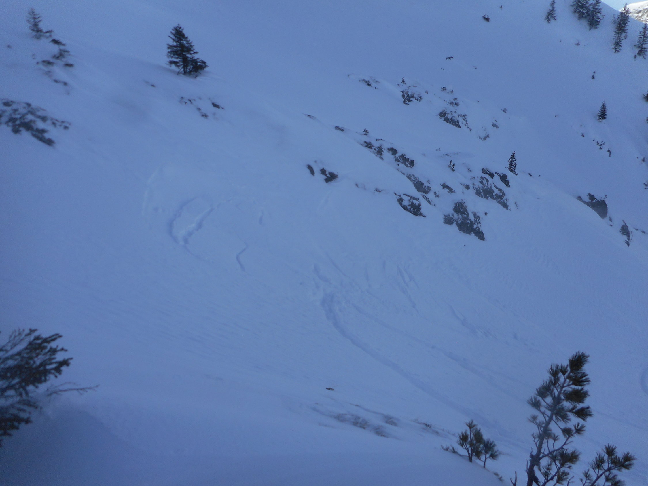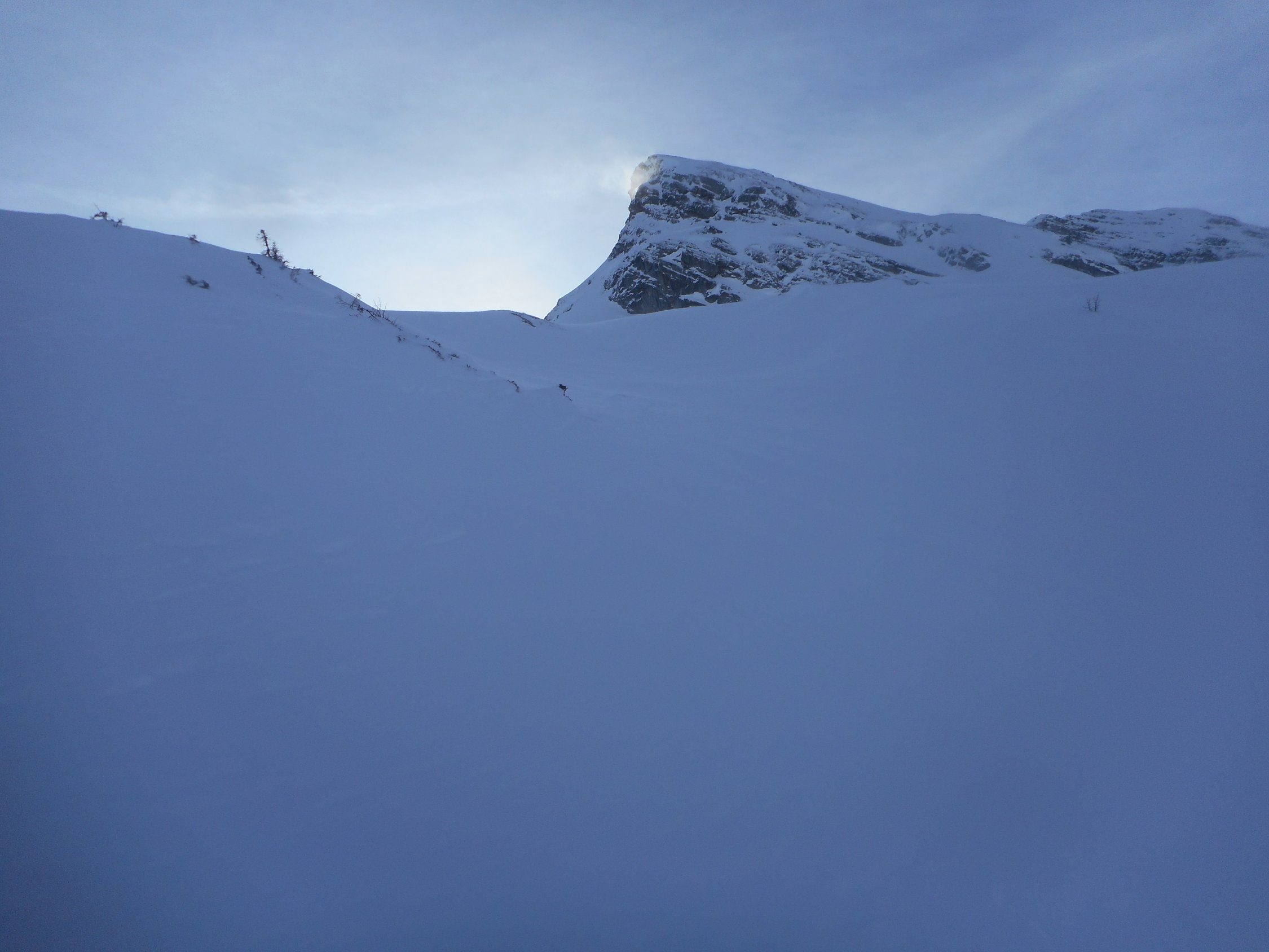 Mehrere spontane Schneebretter gesehen. Siehe Foto Nr.8. Beim Spuren ein kleines Schneebrett ausgelöst. Diese Stelle hatte nicht mal 30 Grad Hangneigung. Es war ein sehr lehrreicher Tag, bei erheblich unterwegs zu sein.
