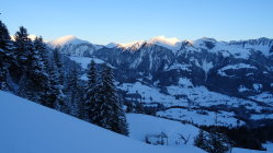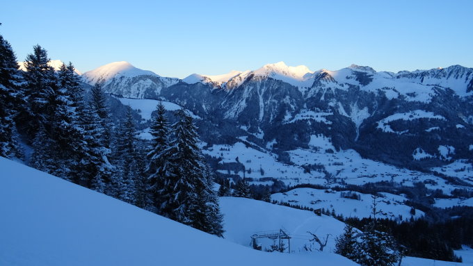 ich bin heute von der Hauptstrasse bei der Simmenbrücke 781m gestartet da es ab hier auch schon 10-15cm Pulverschnee auf einer harten Unterlage hatte.