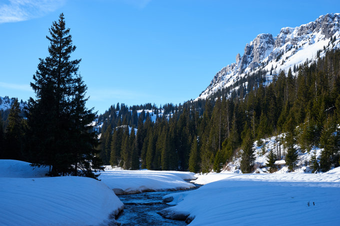 Die Strasse in den Meniggrund war heute eine Eisbahn erster Klasse. Wer kein 4x4 fährt ist gut beraten Ketten frühzeitig zu montieren.