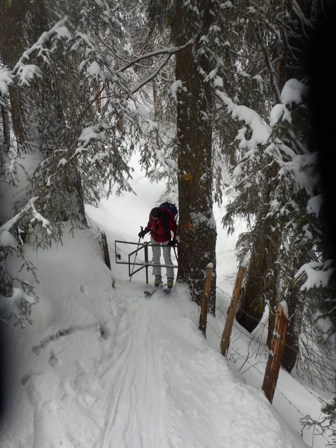 Abfahrt: Mit 30cm bis 40cm Pulverschnee perfekt. Foto Nr.4 und Nr.5 täuschen. Die ganze Route ist sehr gut eingeschneit. Dieser Rücken ist dem Wind ausgesetzt.