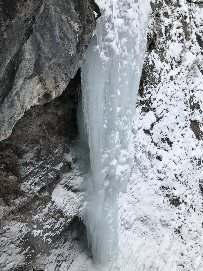 Schneefall ganzer Tag. Säule unterer Teil sehr gut. Oberer Teil hohl und hinterspühlt.