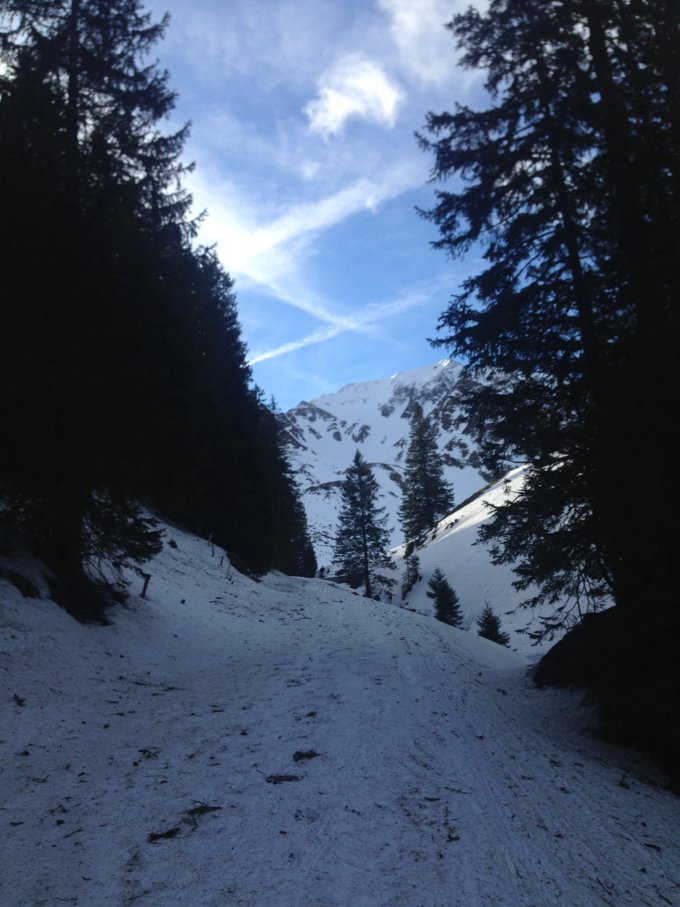 für Aufstieg und Abfahrt. Wider Erwarten erstaunlich gut zum abfahren: Kein Bruchharsch, hart und griffig, stellenweise eisig, aber dem kann man ausweichen. Aufstieg teils mühsam, da glasig.