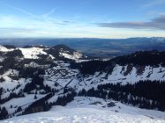 Gantrischgebiet trotz Sturm und Regen immer noch gut eingeschneit. Durchgehende Schneedecke