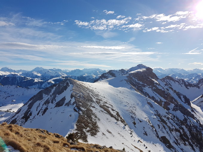 Burglind hat auch hier ihre Spuren hinterlassen. Strasse ab Hengstkurve recht eisig und stark mit Tannnadeln und Ästen verschmutzt,im Wald teilweise kein Schnee mehr.Ab Grechenberg sind Harsteisen hilfreich, da auch im Hang hart und eisig.Flanke vom Hanen wie auch Alpiglermäre abgeblasen und nicht mehr durchgehend Schnee vorhanden. Abfahrt Widdersgrind im oberen Teil pickelhart unten raus mit Sonneneinstrahlung weicher.