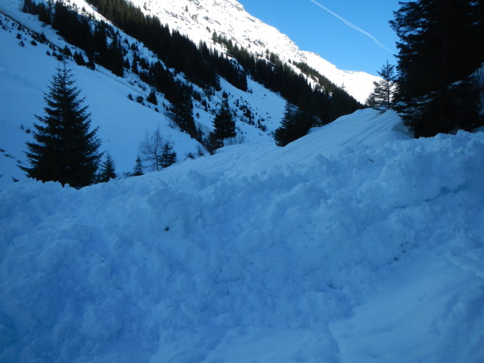 Trotz Regen und Wärme hat es immer noch genug Schnee. Die im Vergaldnertal üblichen Entladungen der seitlichen Hänge haben schon stattgefunden. Teilweise beachtliche Lawinenkegel zu überqueren. Taleinwärts einige Grundlawinen von den nordöstlichen Hängen, die den Gemsen wieder Zugang zum Gras gewähren. Ab ca. 1.850 m unangenehmer Harschdeckel aus fester Eisschicht. Sind umgedreht, weil wir der Lawinensicherheit der steileren Passagen zur Zollhütte nicht vertraut haben. Trotzdem lohnende Tour in wunderbarer Landschaft. Wir waren am Vormittag die einzigen im Tal. Schneeberg wurde an den Tagen zuvor begangen.