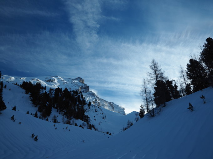 Im mittleren Gipfelhang ein klein wenig Triebschnee.