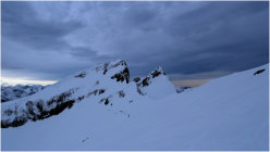 Ab Erfurter Hütte neben schlechter Sicht mehrheitlich Bruchharsch und aufgefrorene Löcher. Anstieg zum Gipfel ebenfalls teilweise vereist oder bruchharschig. Das Skivergnügen hielt sich deshalb sehr in Grenzen, lediglich die ersten HM unterhalb des Gipfels waren pulvrig.