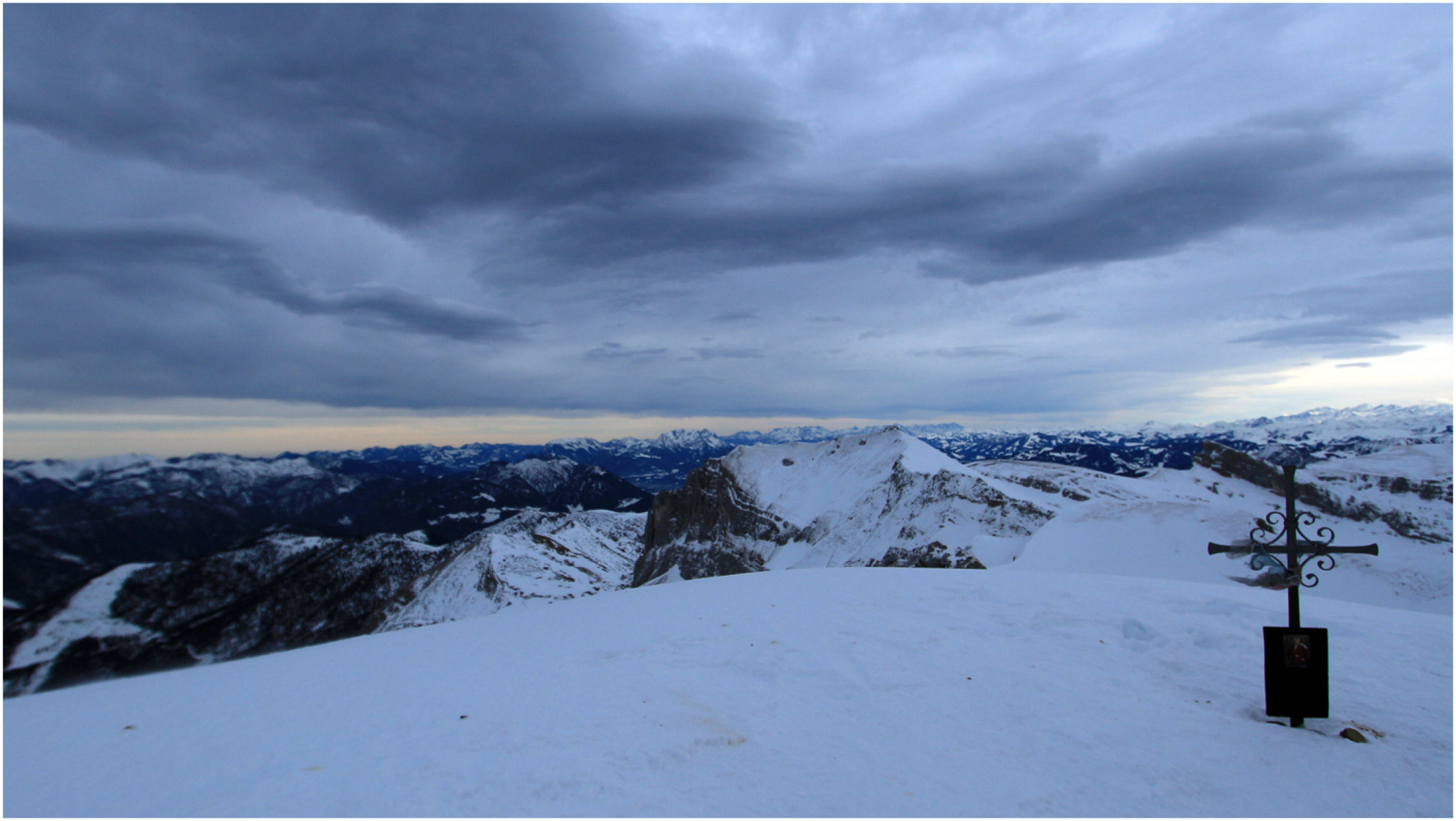 Heute leider nicht richtig Föhn, deshalb schlechte Sicht jedoch auf dem Gipfel stürmischer Wind aus S.