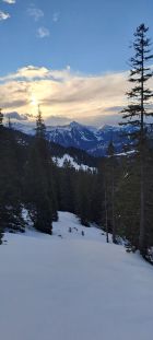 Am Morgen sehr warm, aber auf Nordseite trotzdem super Pulver. Bleibt so. Südwestseite vom Miesenstock wird langsam knapp mit Schnee, Sonst alles gut. Weiterhin machbar