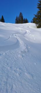 Am Morgen veritabler Föhnstoss bei Start 7°. Auf Miesenegg entschieden auf Nordseite runter. Wunder puder. Unter Sewenschwand wieder ziemlich kalt und Aufstieg zur Trogenegg im besten Pulver. Ab Trogenegg Autobahn zum Miesenstock. Bis dahin mit Föhnfenster sonnig. Miesenstock bei nicht guter Sicht Abfahrt sw Richtung Guberegg und Chesselsmatt zur Alp Dörsmatt.