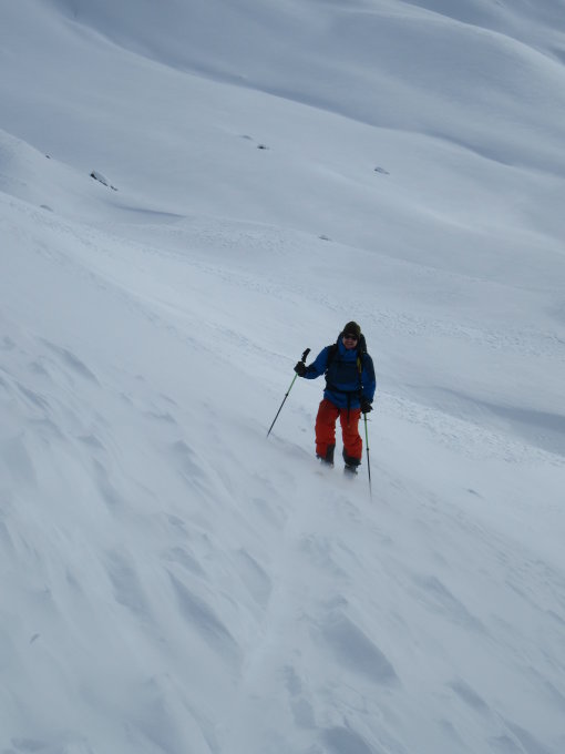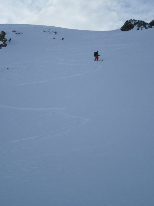Gipfelhang zum Schneeberg gepresster Schnee. Kein Triebschnee gute Verbindung.