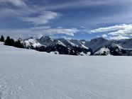 Wetter: zu Beginn Sonne pur, anschliessend rasche Bewölkungszunahme, ab Alp Seeberg kurz horizontaler Schneefall, ab Westgipfel wieder Sonne mit leichter Bewölkung bis zum Schluss, leichter SW-Wind(Fön), am Gipfel erstaunlicherweise fast windstill, Temperatur zu Beginn knapp unter 0 Grad, später +2 Grad