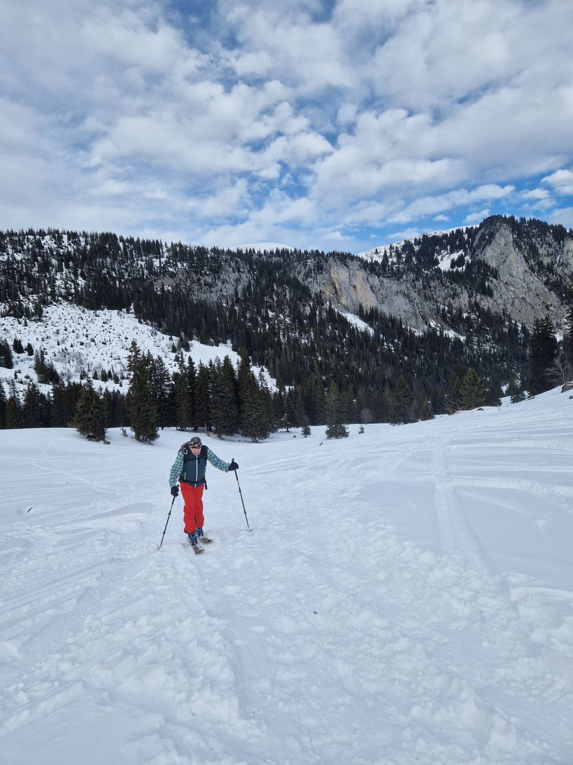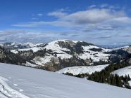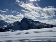 Skifahrerisch vielleicht nicht der ganz grosse Leckerbissen, aber über alles gesehen eine durchaus lohnende und schöne Rundtour. Den Umweg über Alp Seeberg machten wir aufgrund des prognostizierten Fönsturm. Rast bei der Alp Seeberg und am Gipfel rasch wieder abfahren. Da sich aber das Wetter dermassen rasch wieder besserte wäre auch der direkte Aufstieg möglich gewesen.