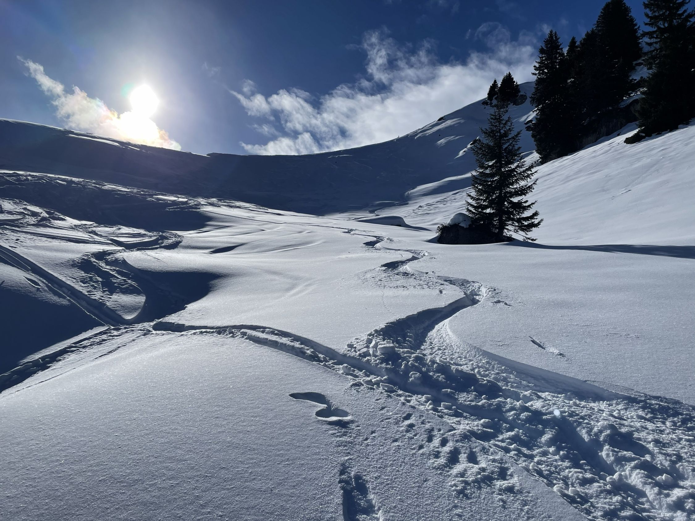 Wir haben die Überschreitung gemacht ab PP-Gasebode über Hindermenige, Alp Seeberg, West- und Hauptgipfel, mit Abfahrt durch den Schwalmeregraben zurück zum Ausgangspunkt.