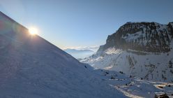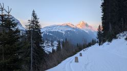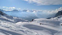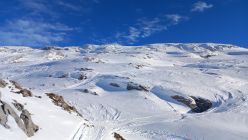 Durchgehende Schneedecke, sehr warm, Gipfelbereich und Kuppen abgeblasen