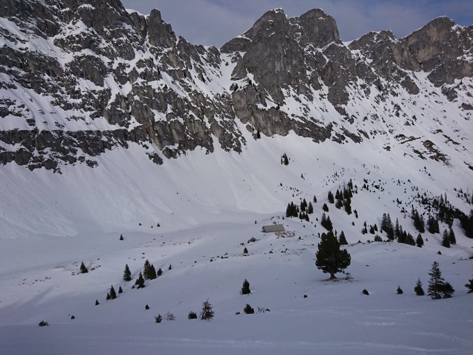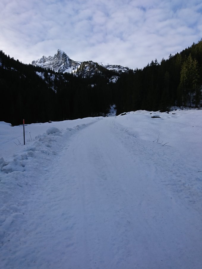 Ab Parkplatz Grimmialp genug Schnee bis oben.