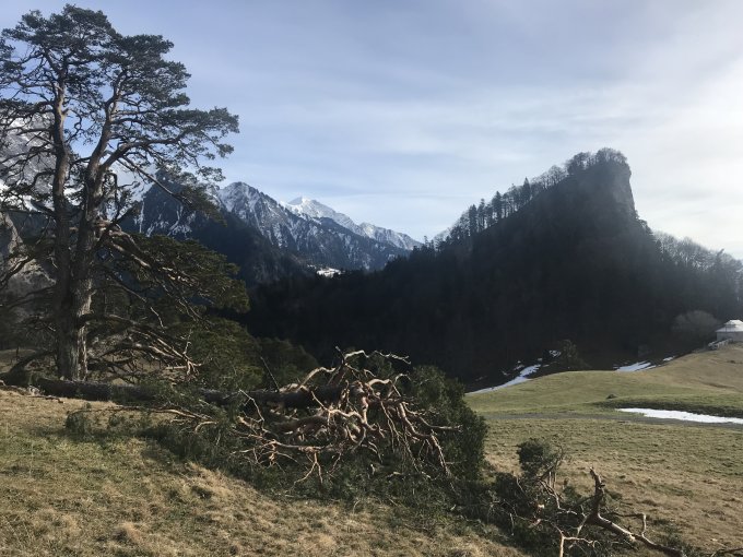 Alles Schneefrei. Das meiste auch Trocken. Es liegen vom Sturm noch kleines Geäst herum, was aber nicht stört. Auch der Weg parallel zum Rhein ist wieder begehbar. Alle Zäune und Gitter sind offen, was den Fahrspass deutlich steigert.