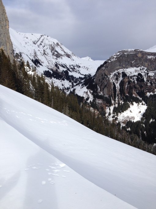 Fahrstrasse Tschingel- Griesalp aper oder eisbedeckt darum „nur“ gut. Oberhalb Griesalp schöner Trittschnee mit Neuschnee ab Hasenboden. Mit Schneeschuhen schön zum laufen.